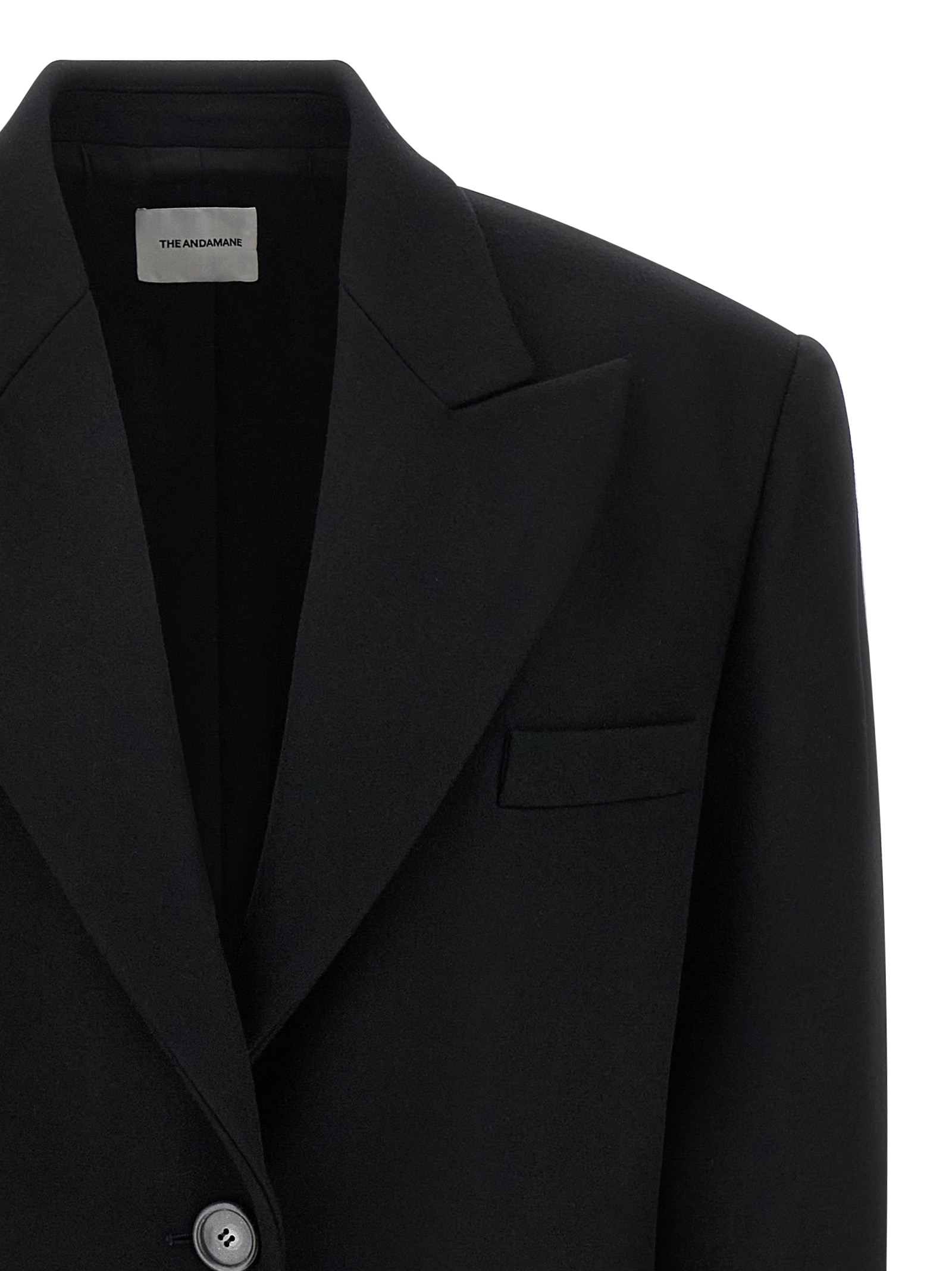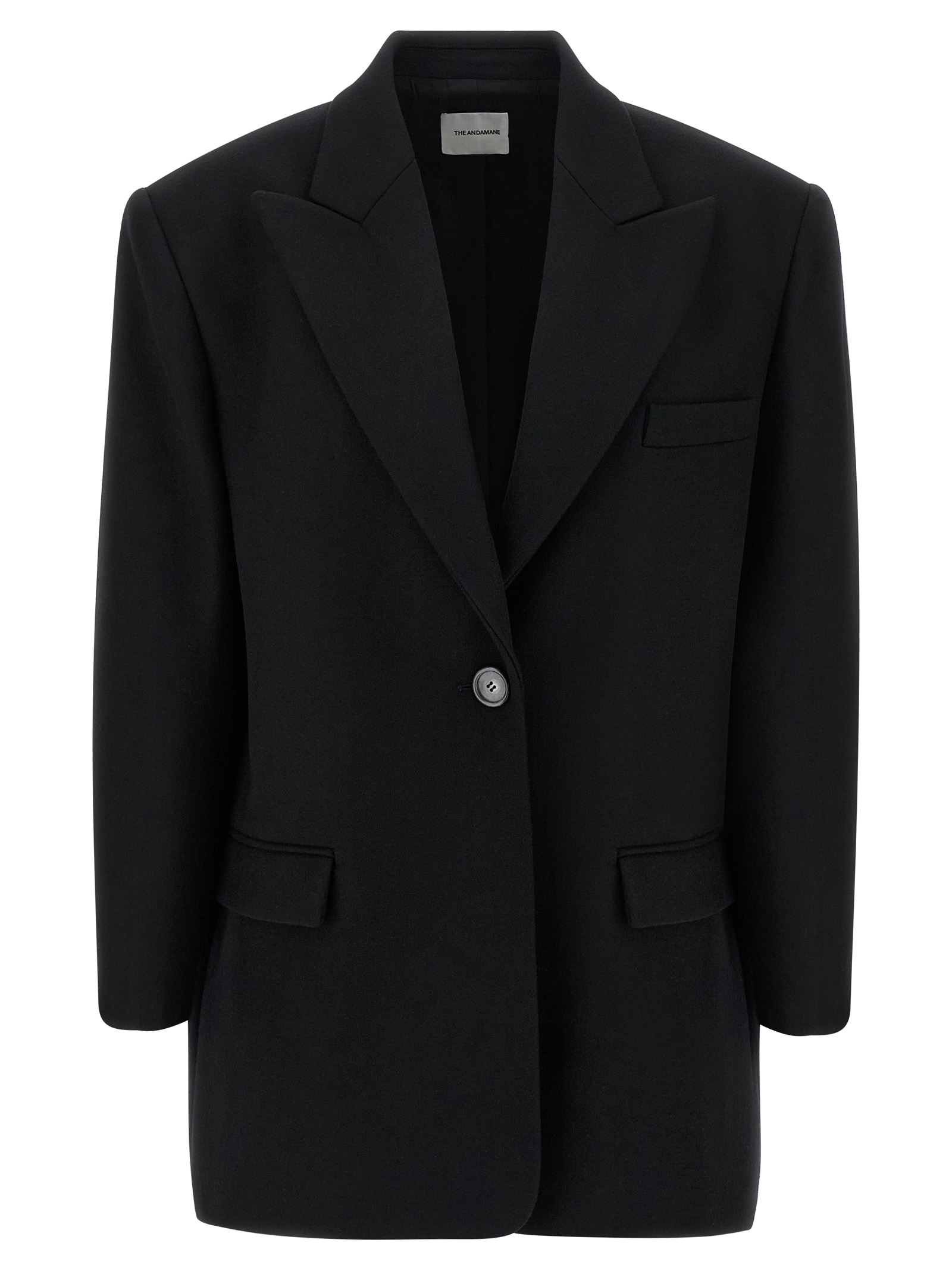 Однобортный блейзер «Teresa» из смеси шерсти и кашемира с застежкой на пуговицах спереди, остроконечными лацканами, нагрудным карманом, карманами с клапанами, макси-подкладкой на плечах, длинными рукавами, шлицем сзади, подкладкой.