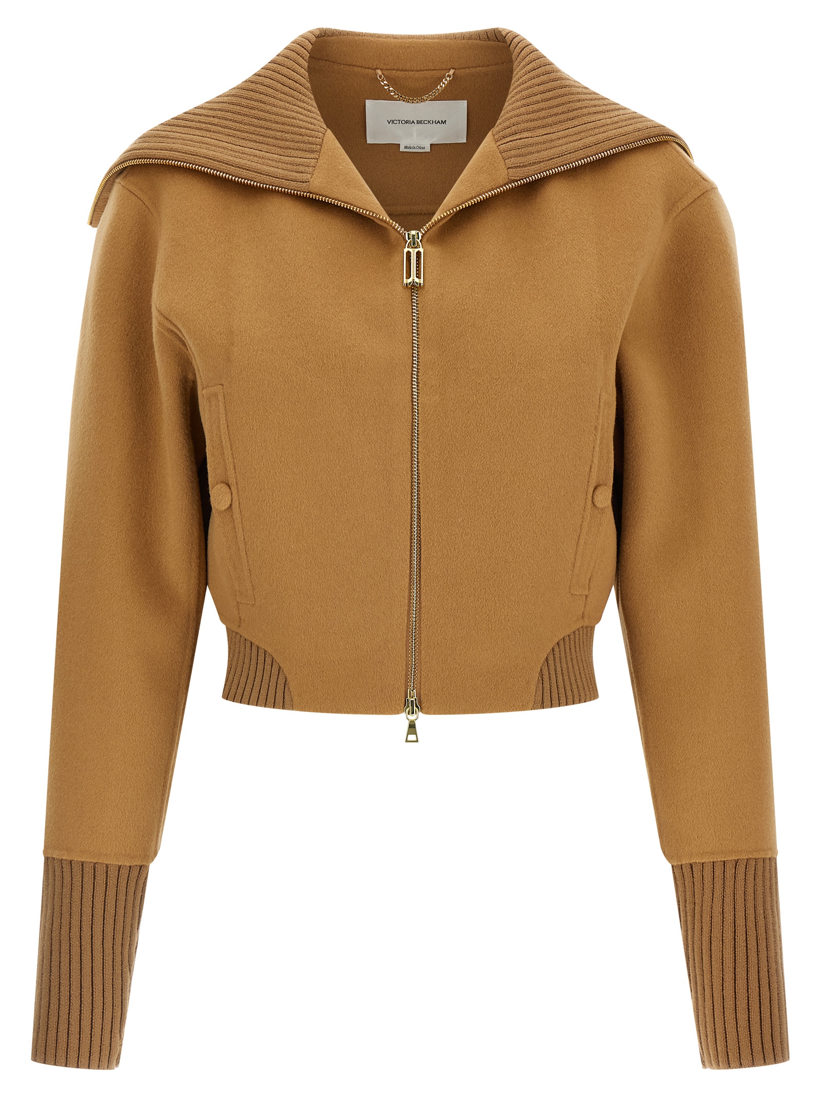 Куртка из кашемировой смеси «Double Faced Bomber» с эластичными ребристыми вставками, застежкой-молнией спереди с металлическим логотипом «B Frame», отложным воротником на плечах, карманами и длинными рукавами с манжетами.