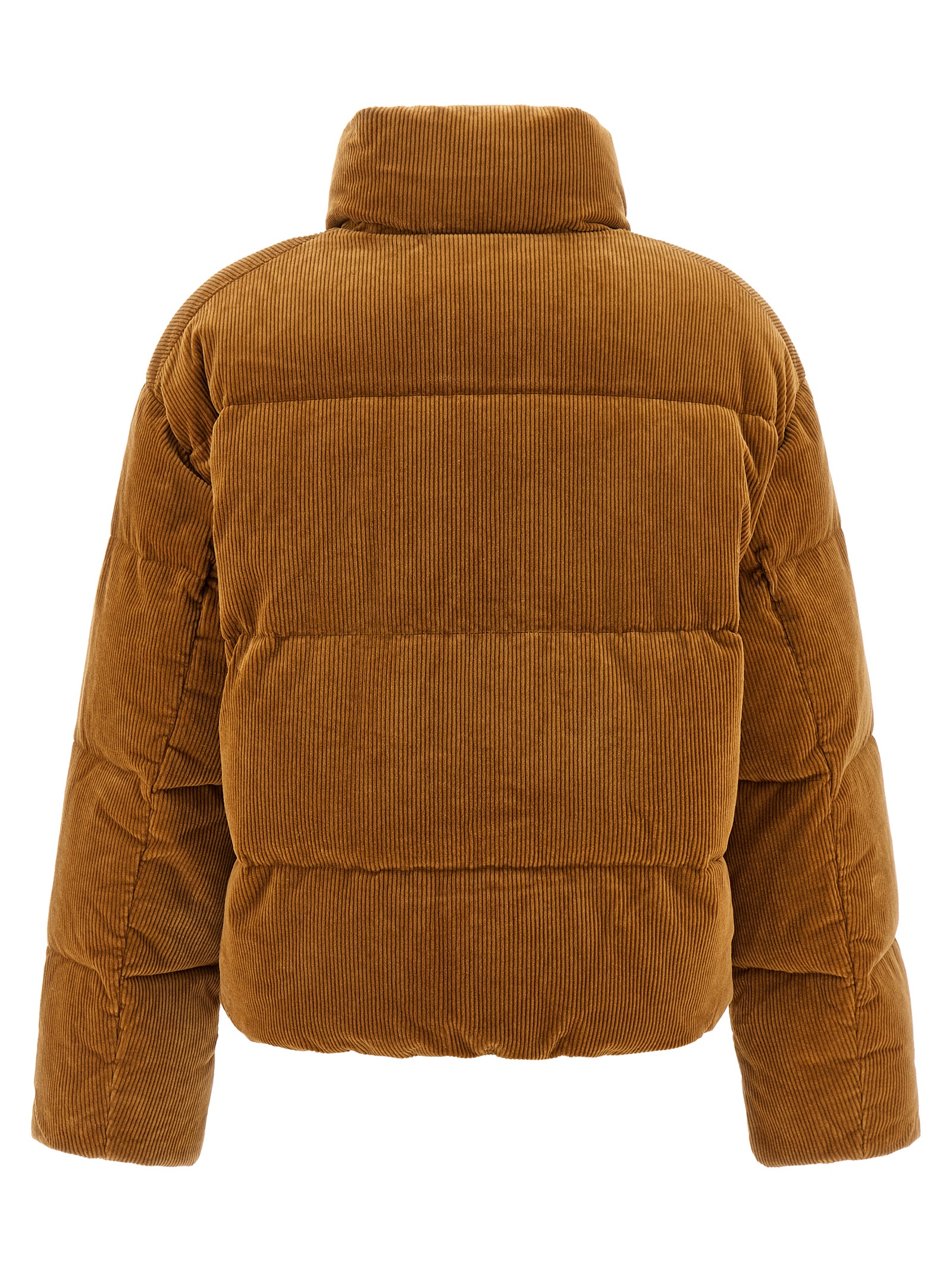 Стеганая куртка из вельвета, хлопковая подкладка с гусиным пухом, воротник-стойка, вышитый логотип и застежка-молния спереди, карманы, длинные рукава, эластичный подол.