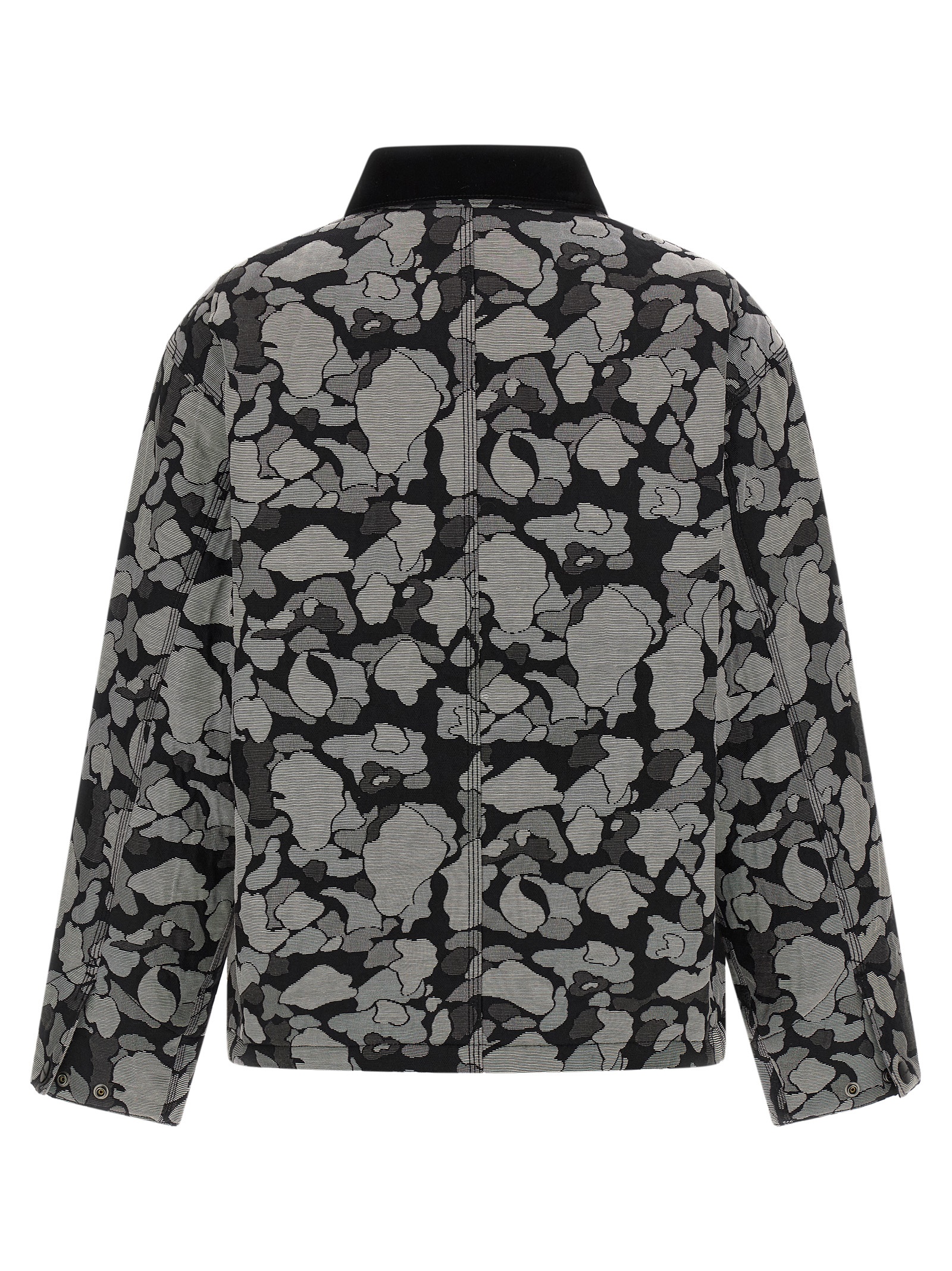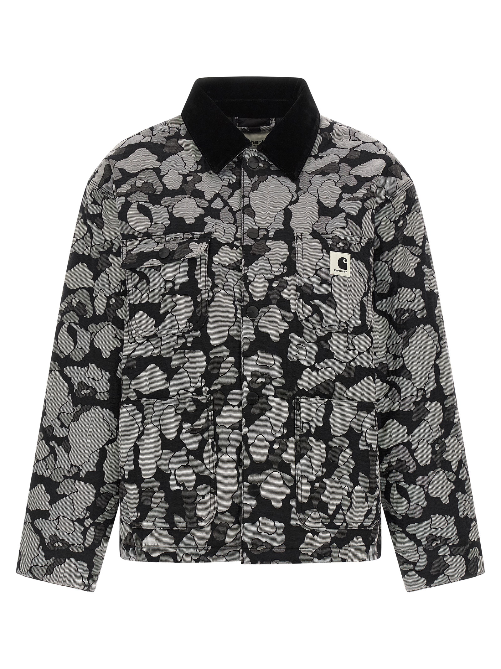 Жакет «Tapestry Chore Coat» с цветочным жаккардовым узором из бархатного жаккарда, бархатный воротник-стойка, утепленный и стеганый, передние карманы, кнопки-защелки, длинные рукава с регулируемыми манжетами на кнопках-защелках.