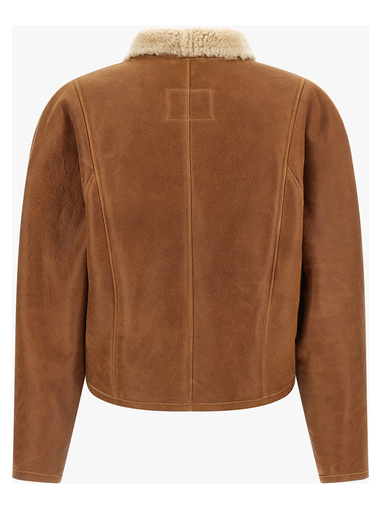 Куртка «Blondine» из кожи ягненка с эффектом потертости, с подкладкой из овчины, укороченного кроя, с асимметричной застежкой-молнией, высоким воротником, карманами и длинными рукавами.