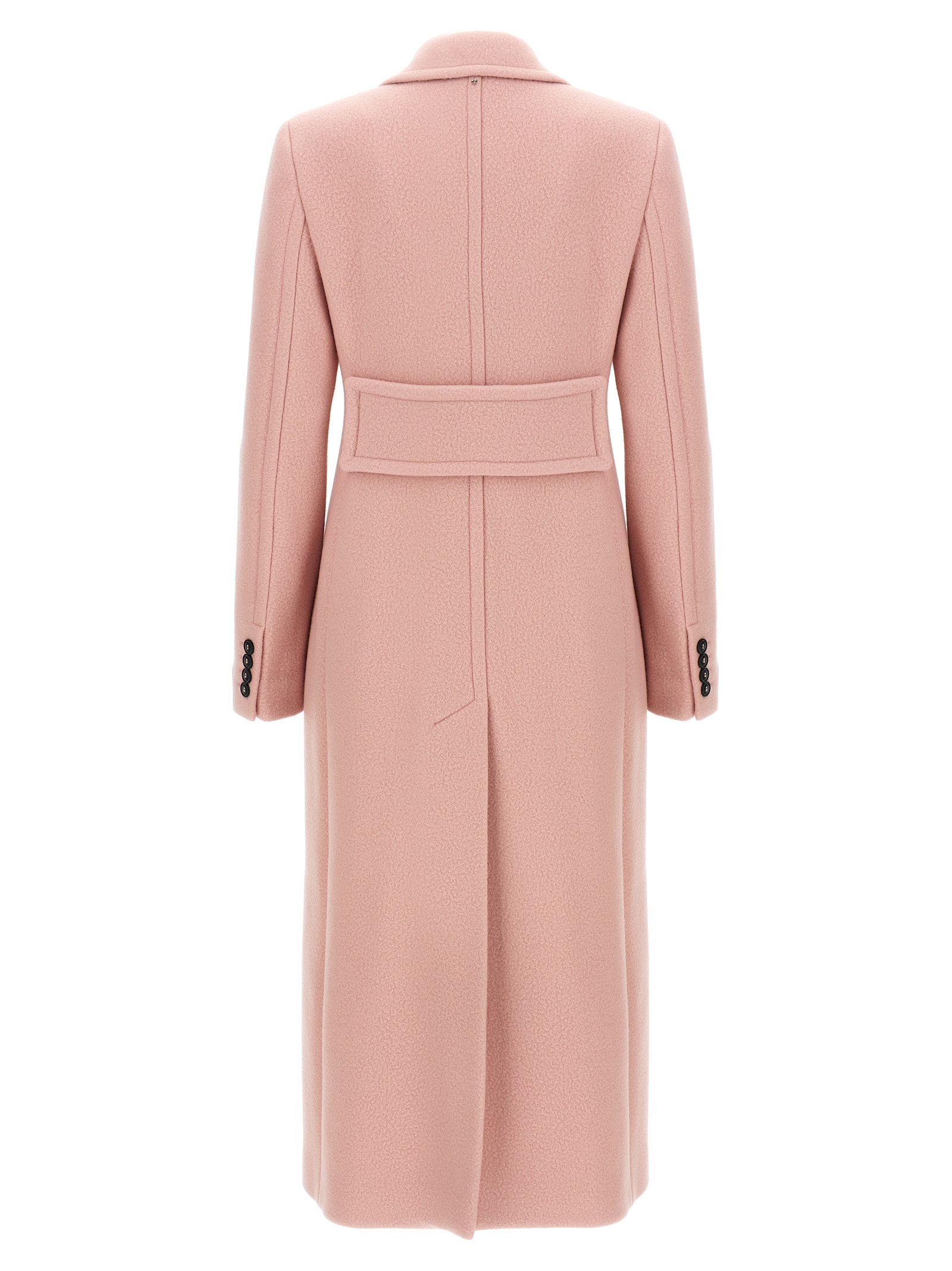 Двубортное пальто «Comune» из чистой натуральной шерсти с застежкой на пуговицах спереди, воротником с лацканами, карманами, структурированными плечевыми лямками, длинными рукавами, мартингалом и задним перекрывающимся разрезом, подкладкой из вискозной смеси.
