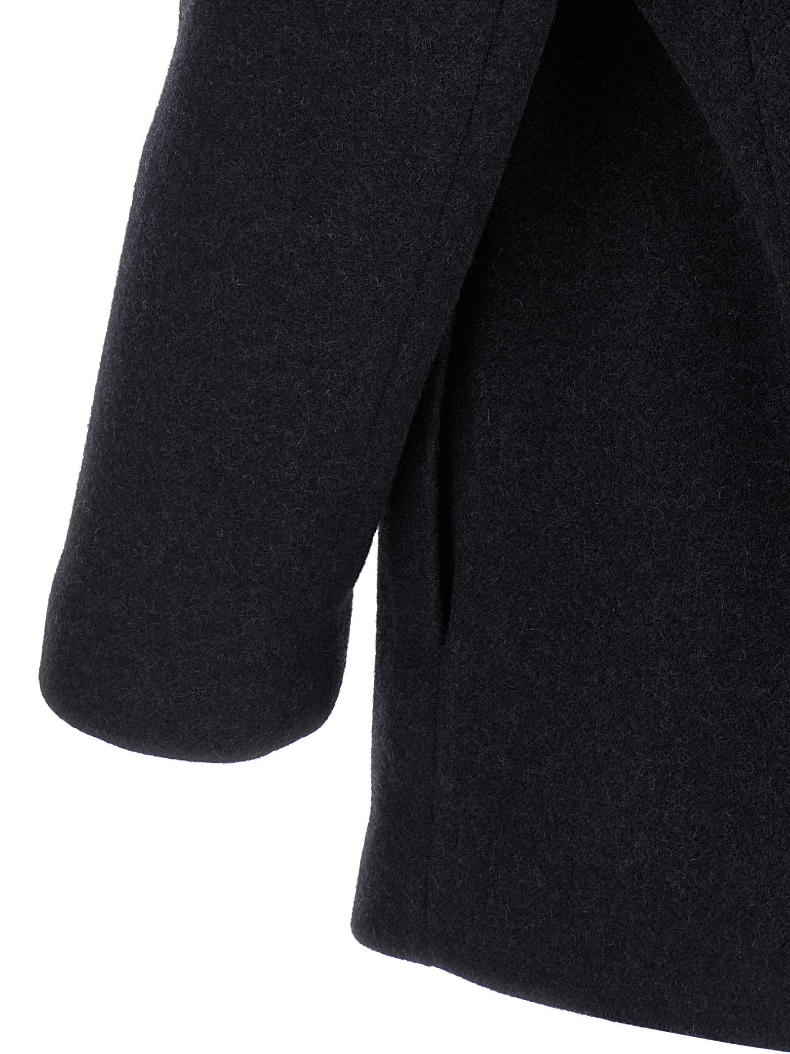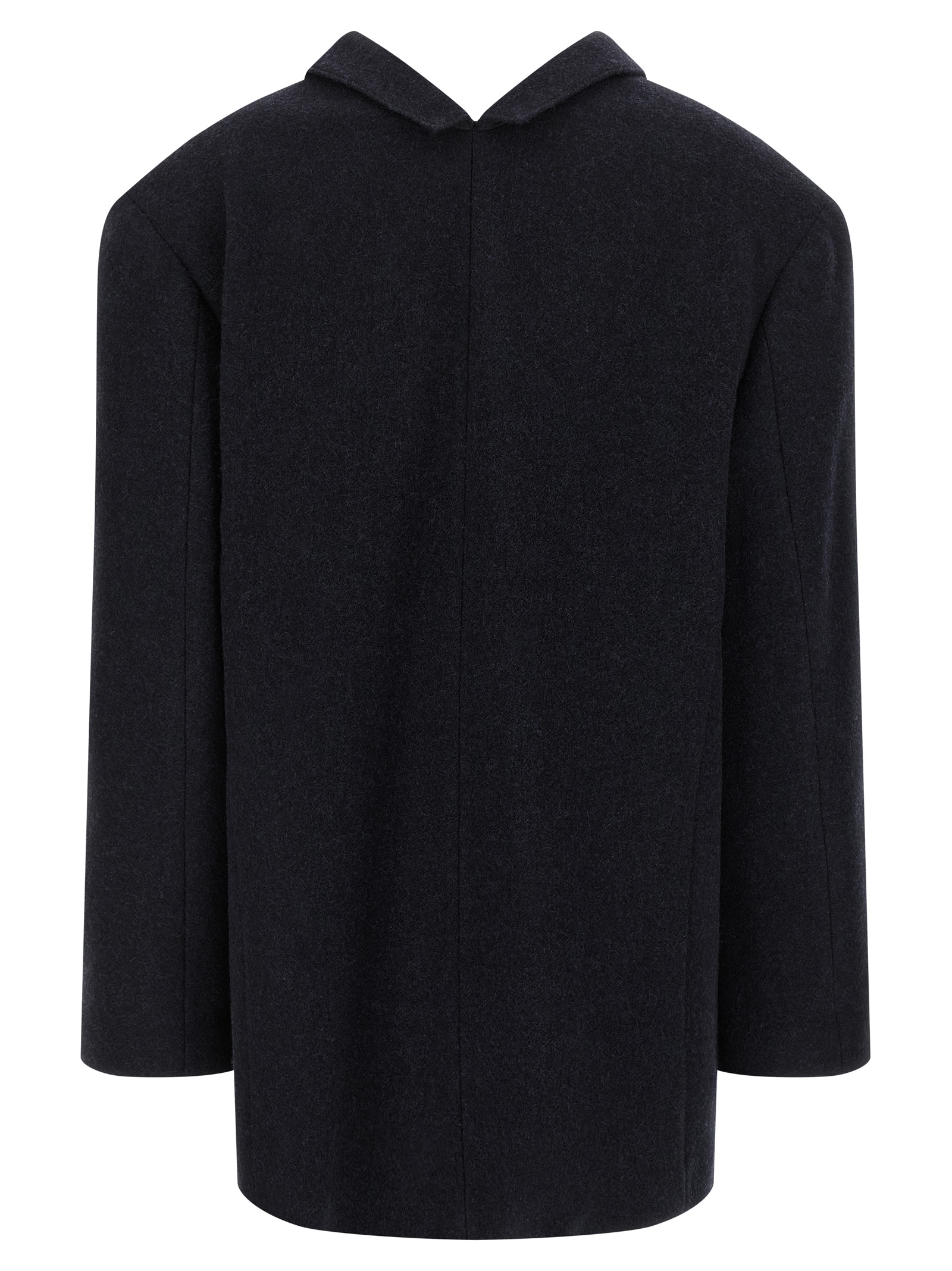 Однобортное пальто из шетландской шерсти с отложным воротником с застежкой на кнопках, карманами, структурированными плечевыми лямками, длинными рукавами, без подкладки.