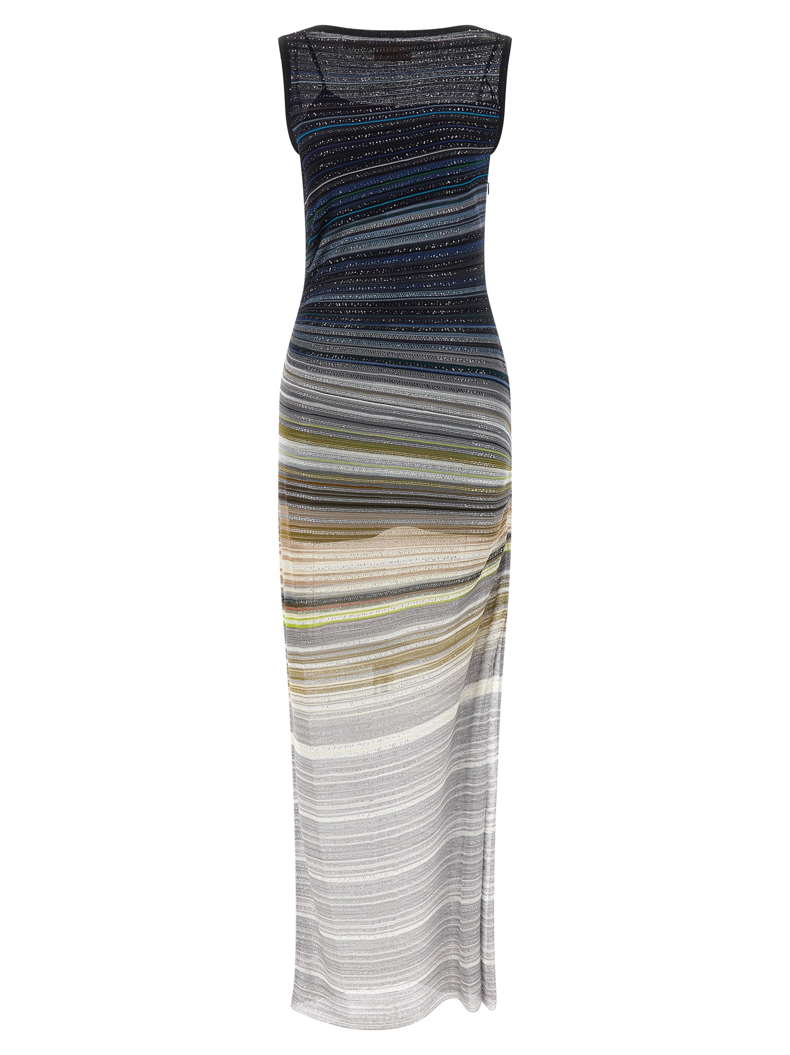 Длинное платье из вискозного трикотажа с ламе и микропайетками по всей поверхности, круглый вырез, полупрозрачное с короткой подкладкой внутри, без рукавов.