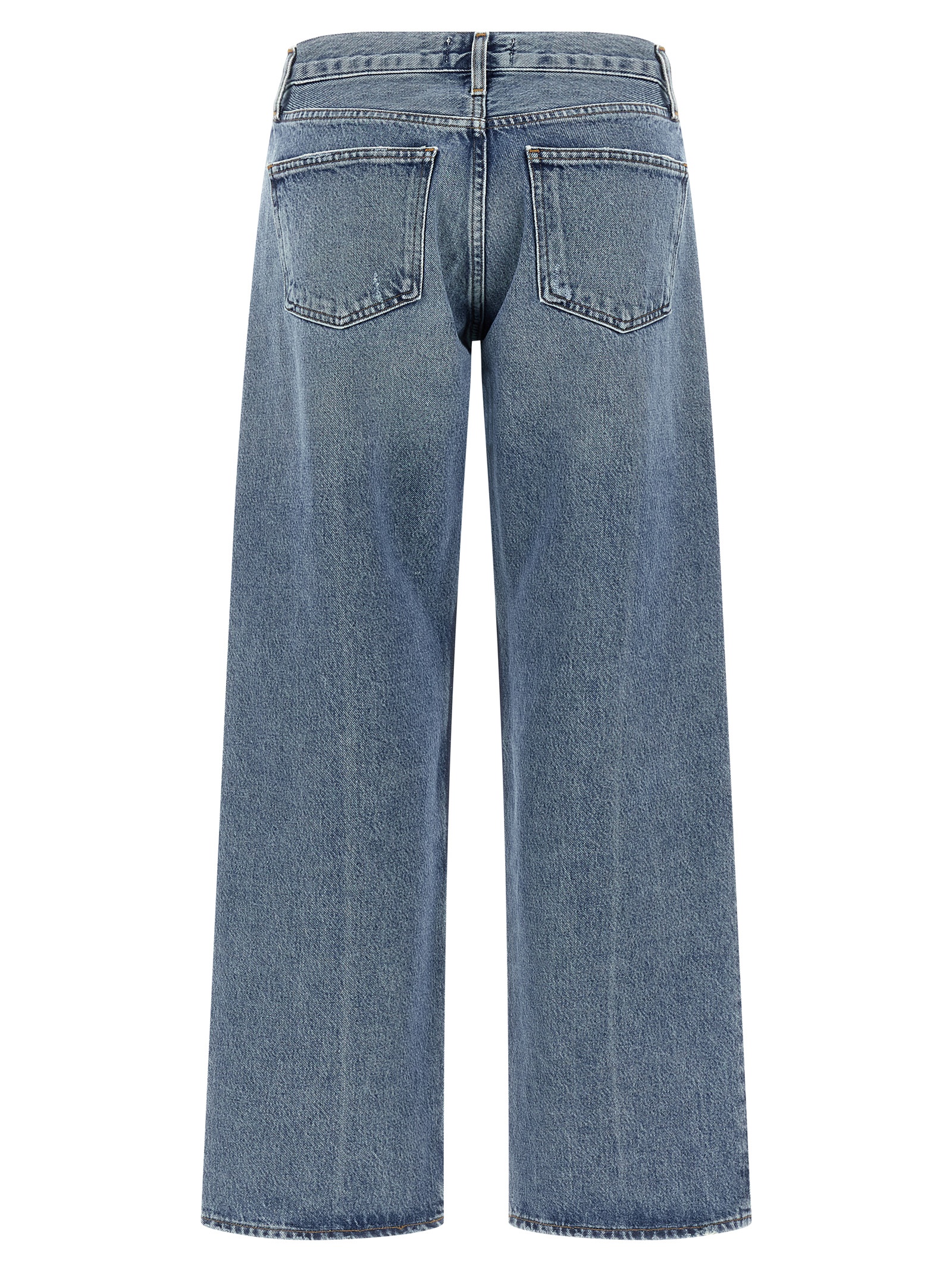 Джинсы «Low Rise Loose» из денима средней степени износа цвета индиго, с низкой талией, широкими и прямыми брючинами, застежкой на пуговицах спереди и пятью карманами. ЭКОЛОГИЧНОСТЬ: этот продукт изготовлен из регенерированного хлопка.