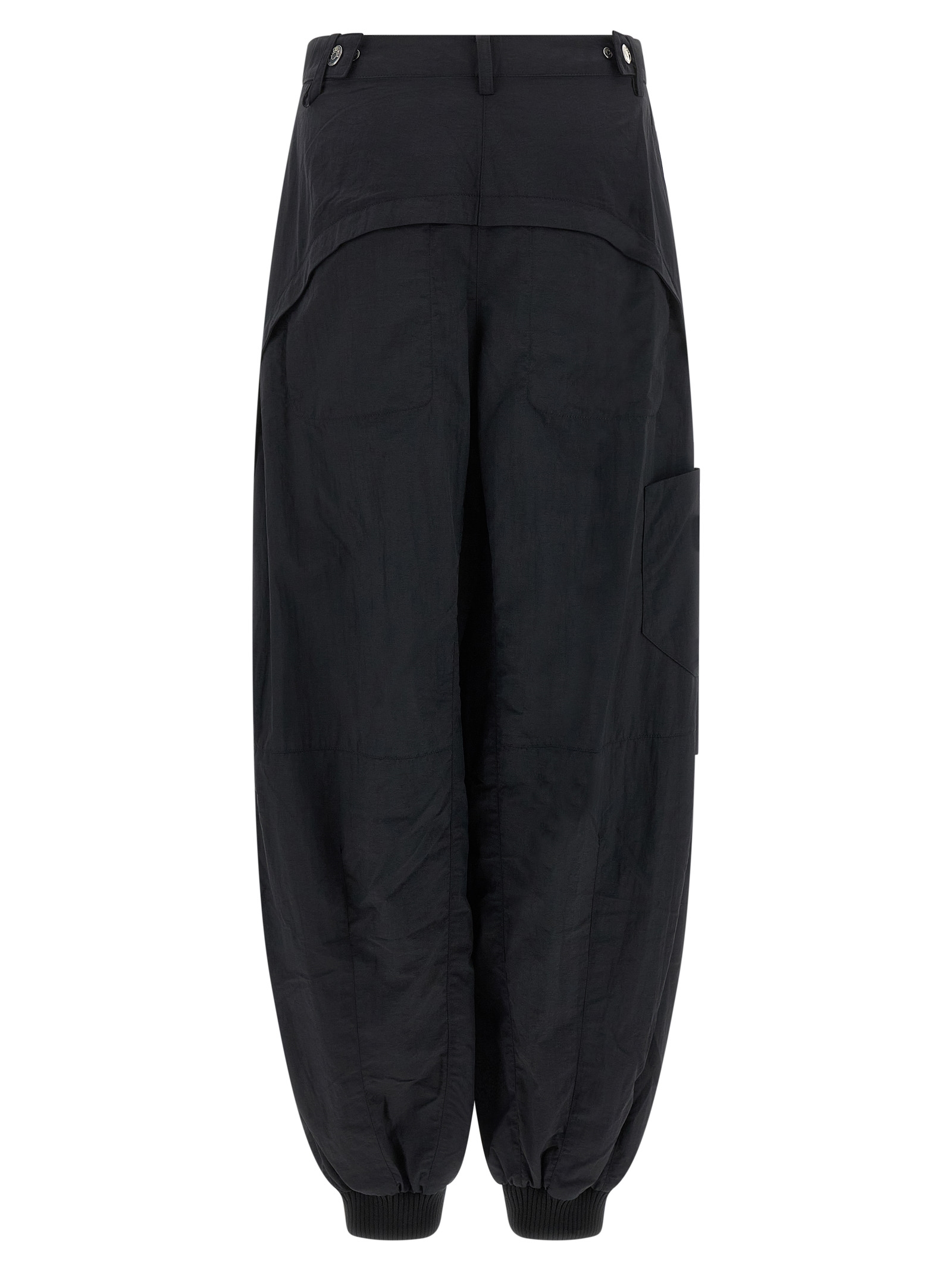 Нейлоновые брюки «Le Cargo Ovalo», боковые карманы, застежка на молнию и пуговицу, широкие брючины, эластичные трикотажные манжеты на подоле.