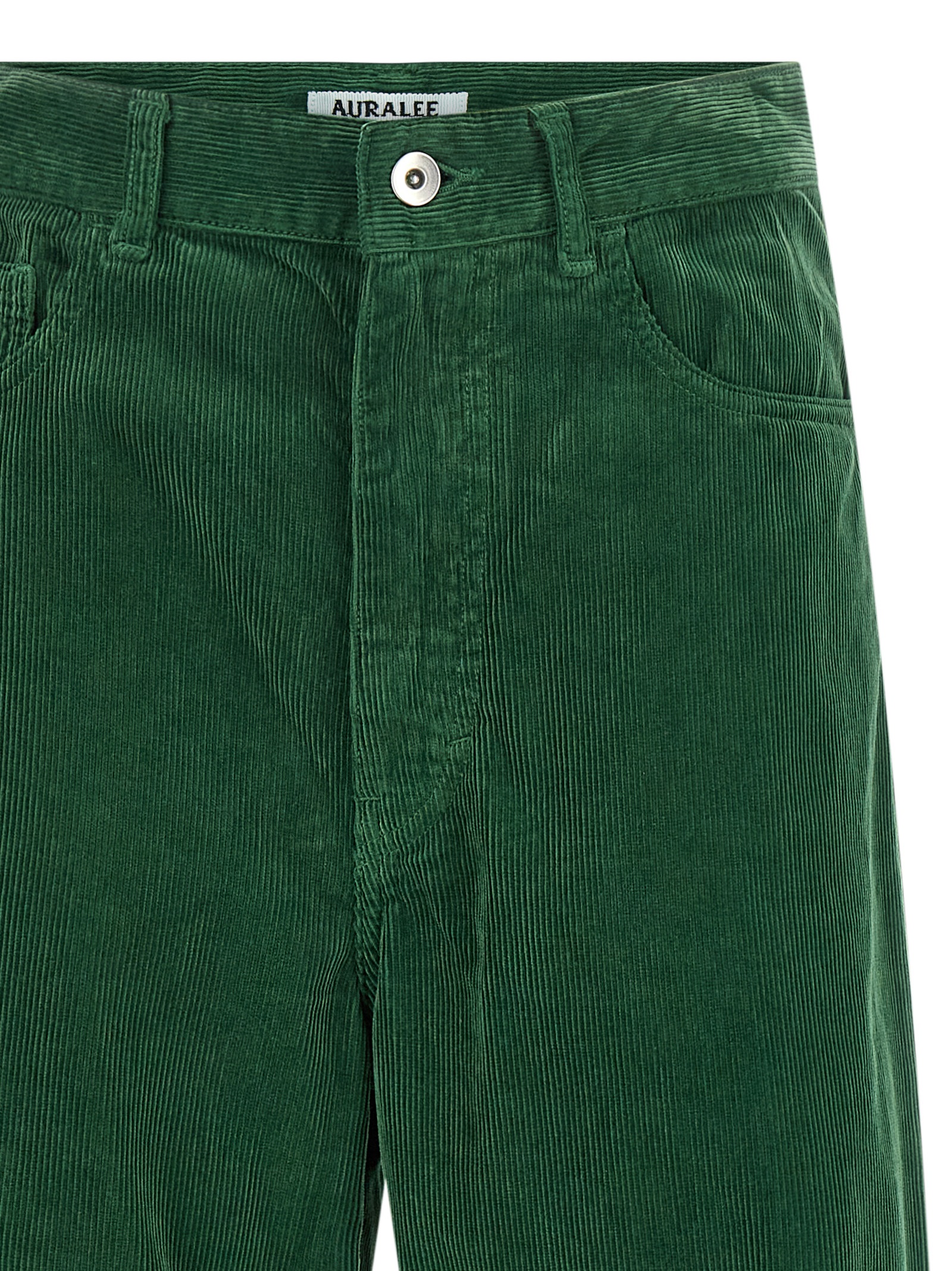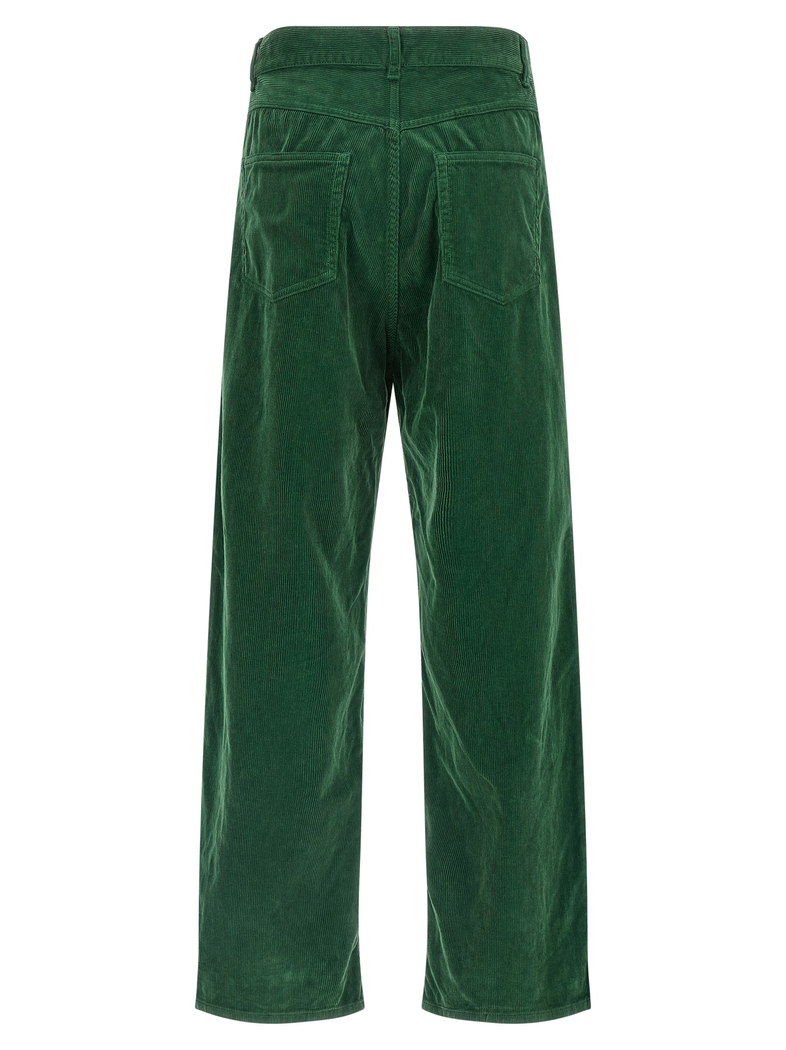 Брюки из египетского вельвета Finx, окрашенные в цельном виде, с широкими прямыми брючинами, застежкой на молнию и пуговицу спереди, пятью карманами.