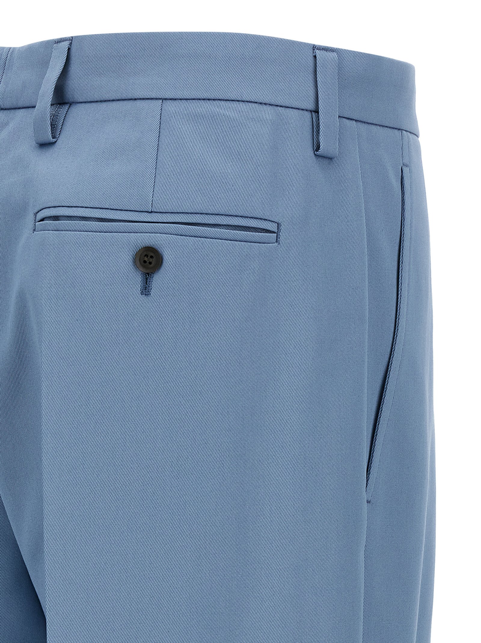 Sustained cotton trousers, stretched pleat, pins, straight leg, zip and front hook closure, pockets.