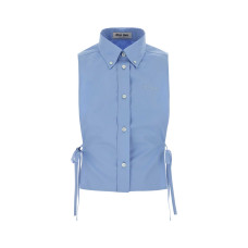Белая рубашка-сорочка из поплина, оверсайз, черная PRADA (P470FGS2211XV2)