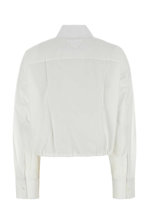 Белая рубашка-сорочка из поплина, оверсайз, черная PRADA (P470FGS2211XV2)