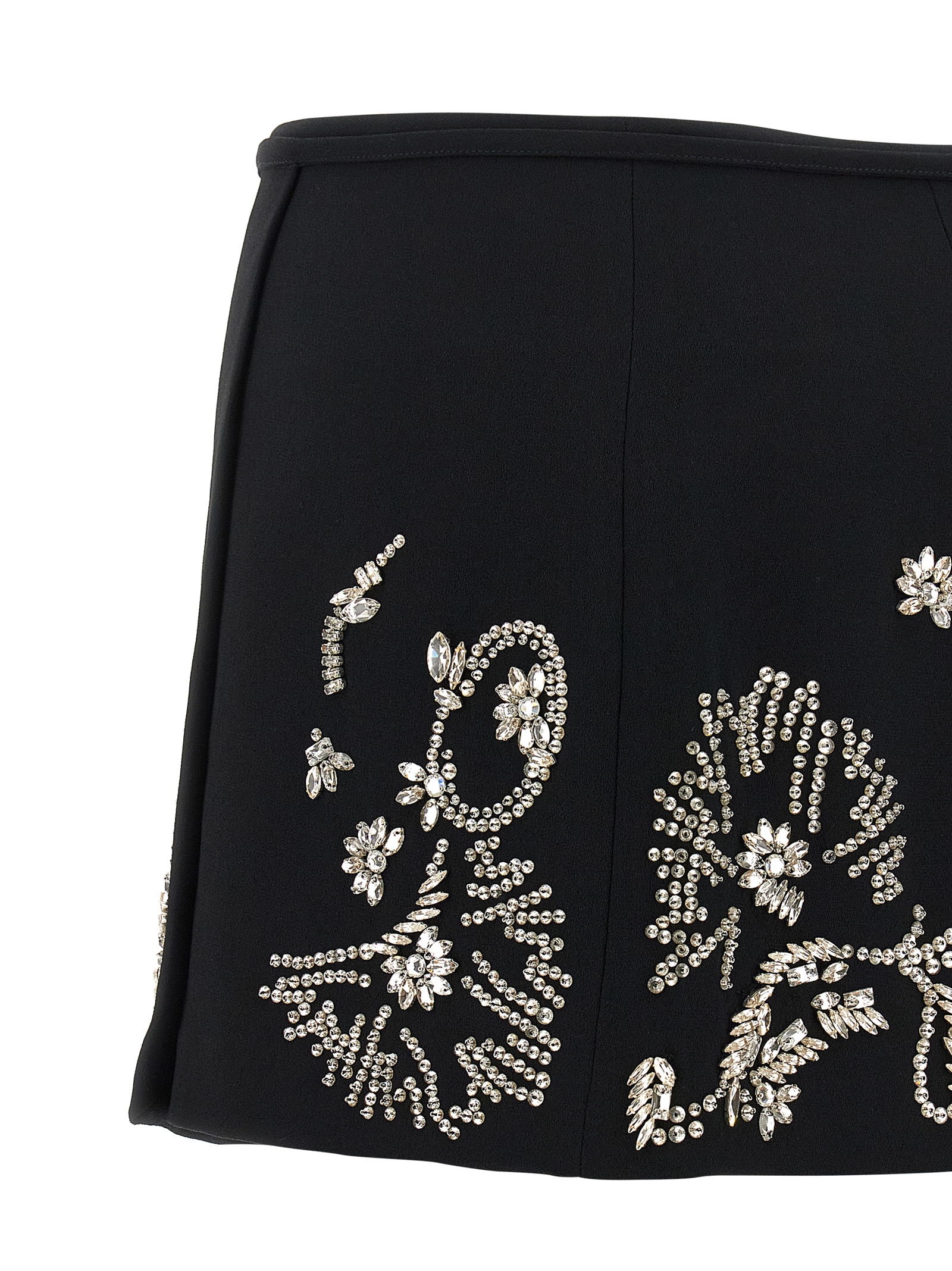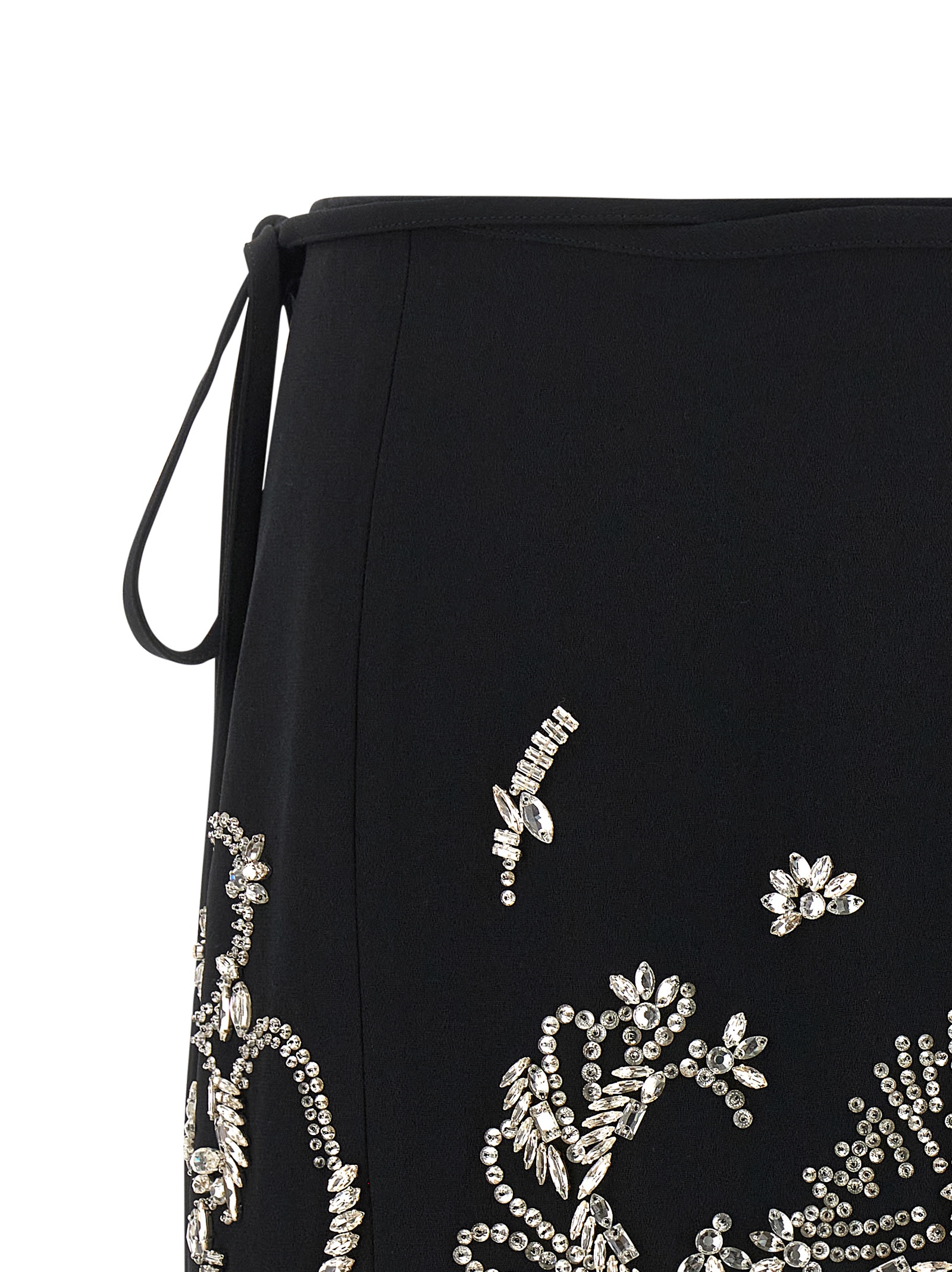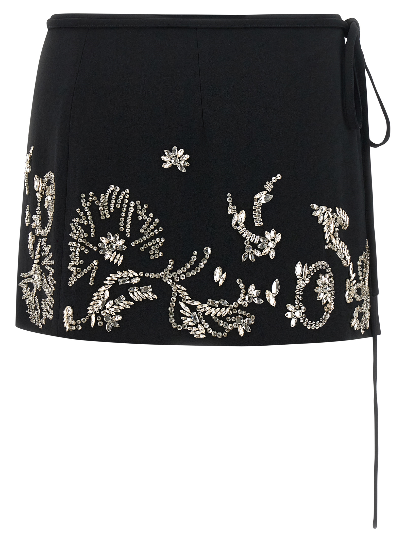 'Gabrinas' woven miniskirt with crystal appliqué, wallet style with side drawstring closure.