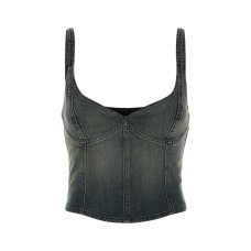 Черный укороченный топ из вискозной смеси PALM ANGELS (PWHT001F24KNI001)