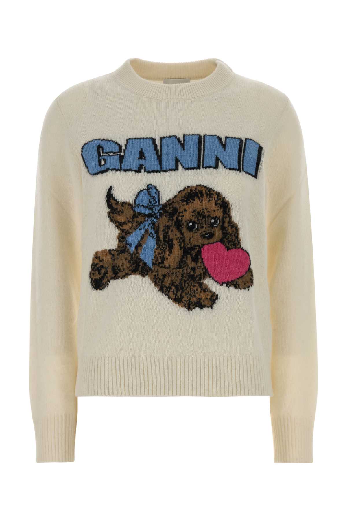 Свитер из смешанной шерсти цвета слоновой кости GANNI (K2562)