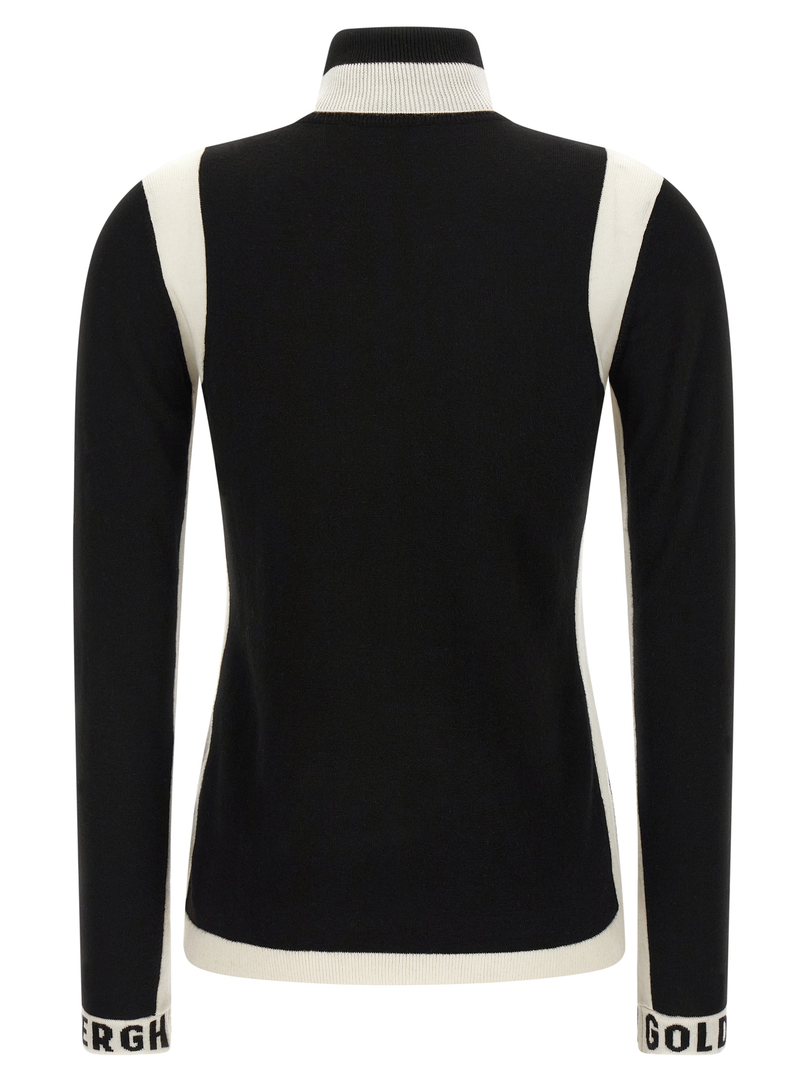 Свитер Noemi из смеси мериносовой шерсти с жаккардовым узором, высоким воротником, длинными рукавами с манжетами и металлической биркой с логотипом.