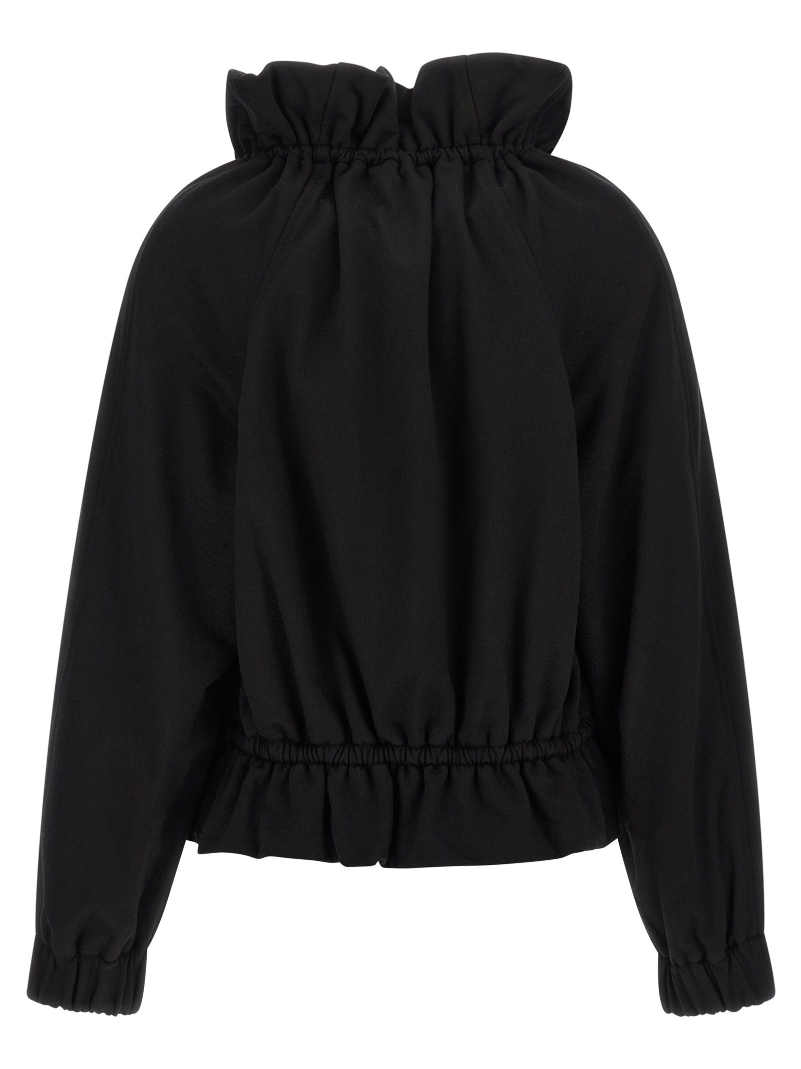 Толстовка из плотного хлопкового джерси «Hally», хлопковая подкладка, силуэт «кокон», воротник-капюшон на шнурке, застежка-молния спереди, карманы, длинные рукава с эластичными манжетами, шнурок на подоле с воланом.