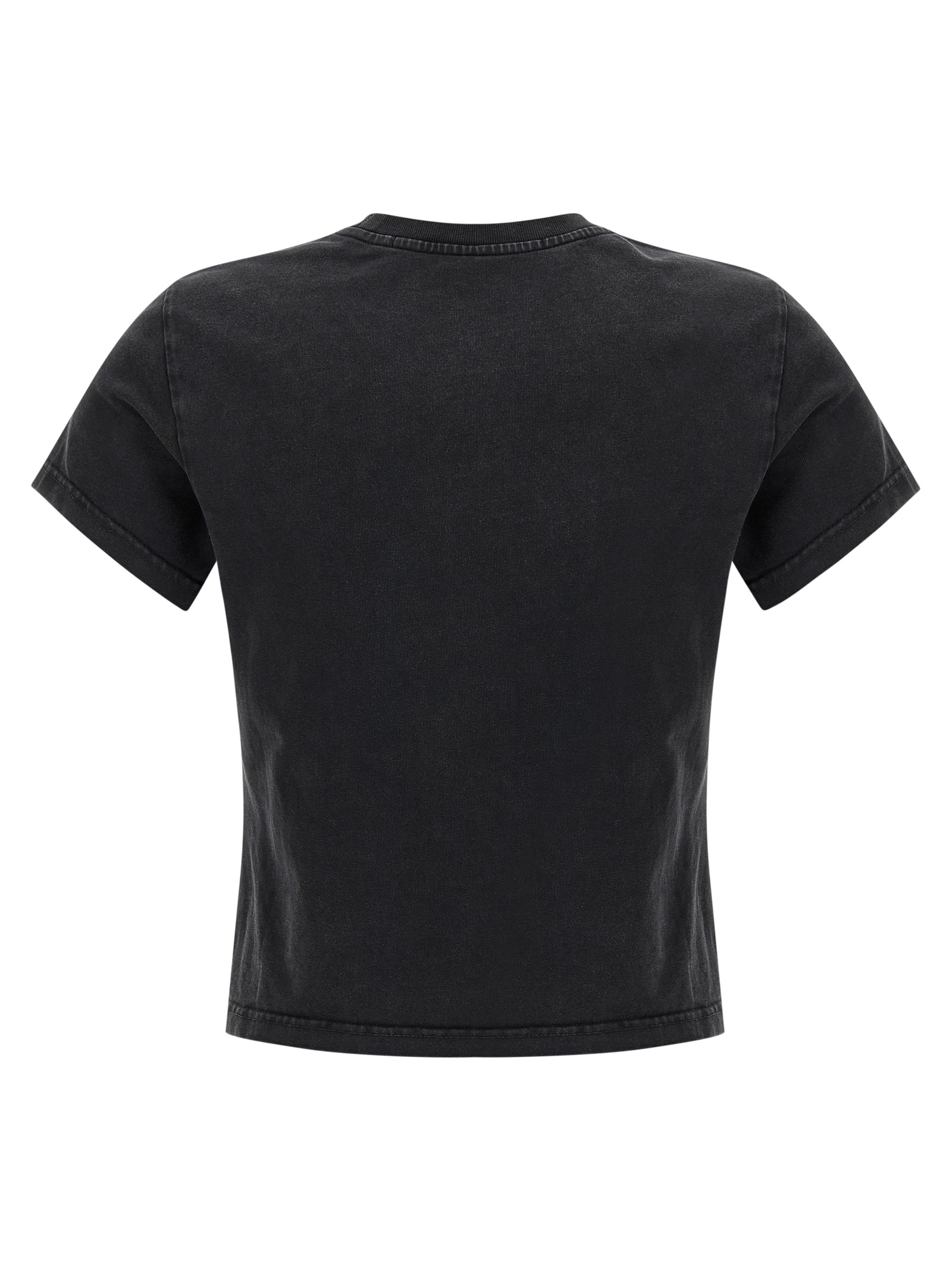 'Shrunken' T-shirt in delavé cotton, front print with rhinestone appliqué, crew neck, short sleeves.