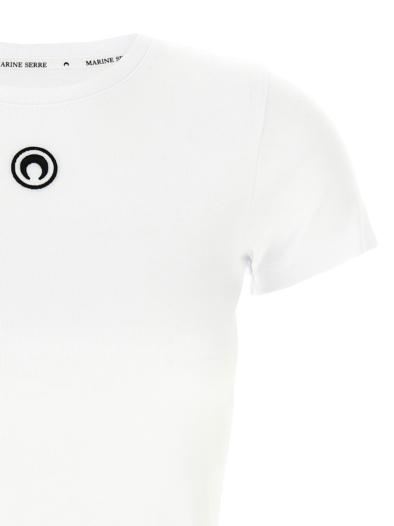 Хлопковая футболка с вышивкой «Moon Logo» спереди, логотипом на спине, круглым вырезом и короткими рукавами.