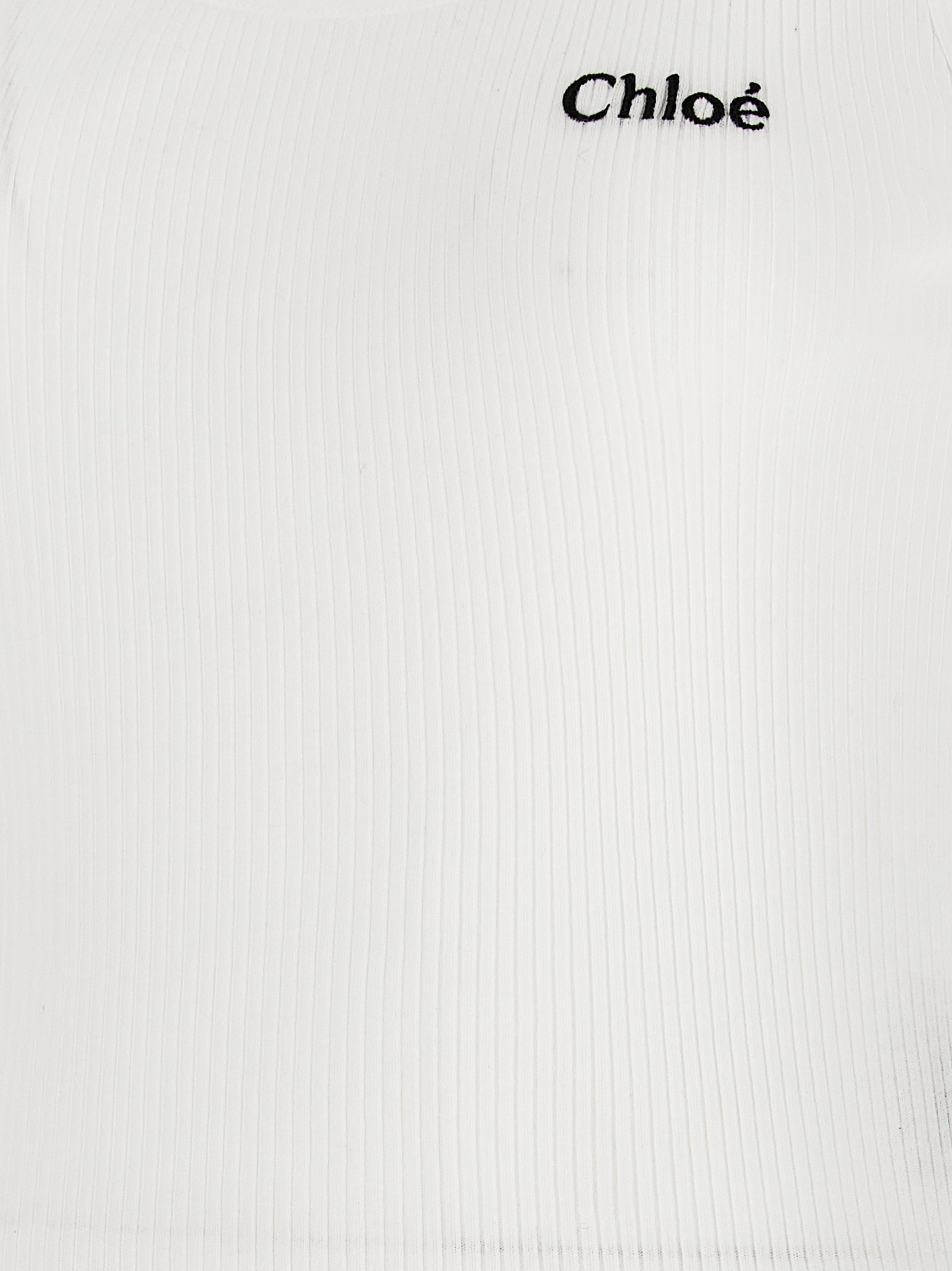 Слегка растягивающийся хлопковый топ с ребристой текстурой, круглым вырезом и вышитым логотипом спереди.