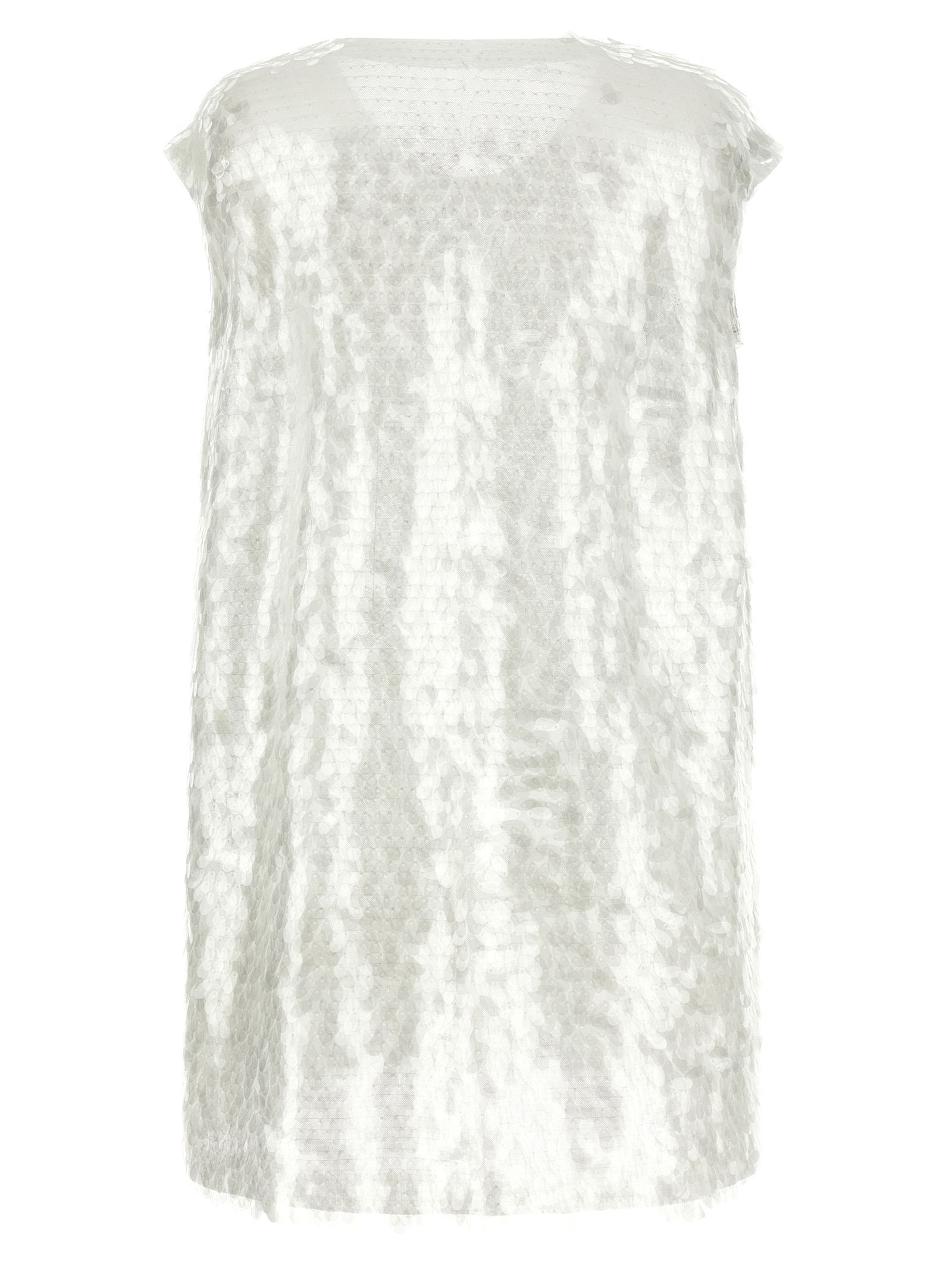 'Boyfriend' mesh top with all-over tone-on-tone teardrop sequins, crew neck, raw cut hem.