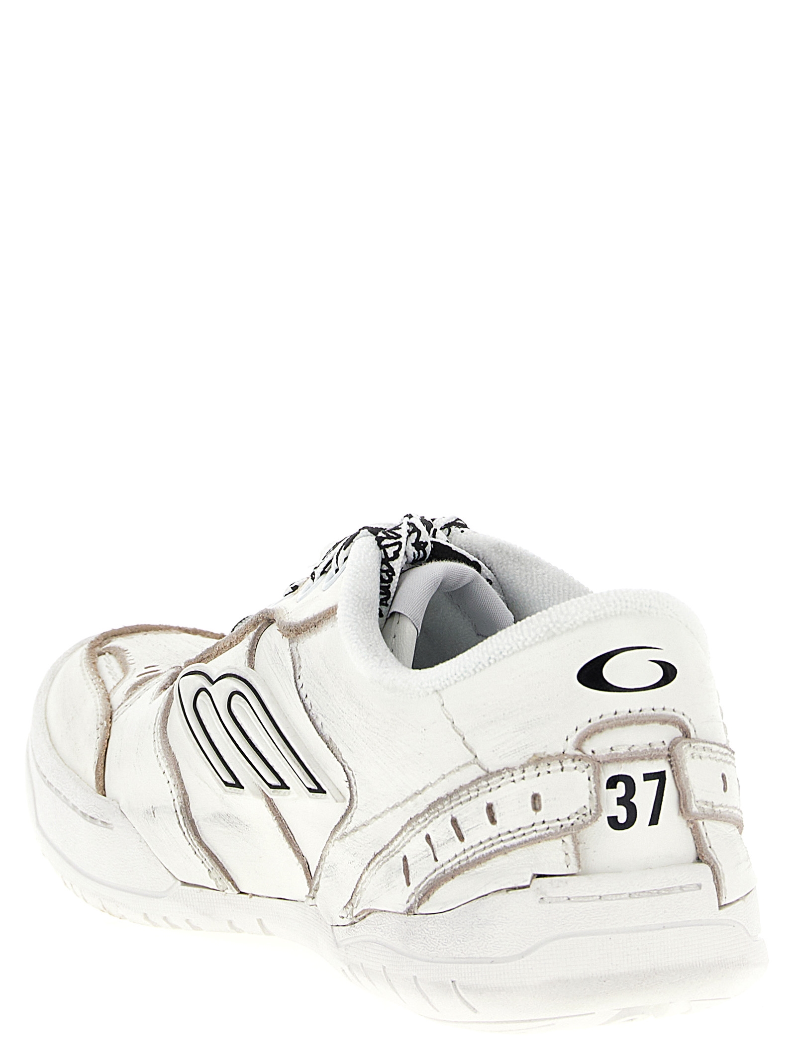 'Hamptons Worn-Out Medio' sneakers in cowhide leather and used-effect polyester, raw-cut edging and visible stitching on the upper, embossed size on the upper and back of the heel, rubber '3B Sports Icon' pattern, lace-up closure, rubber sole.