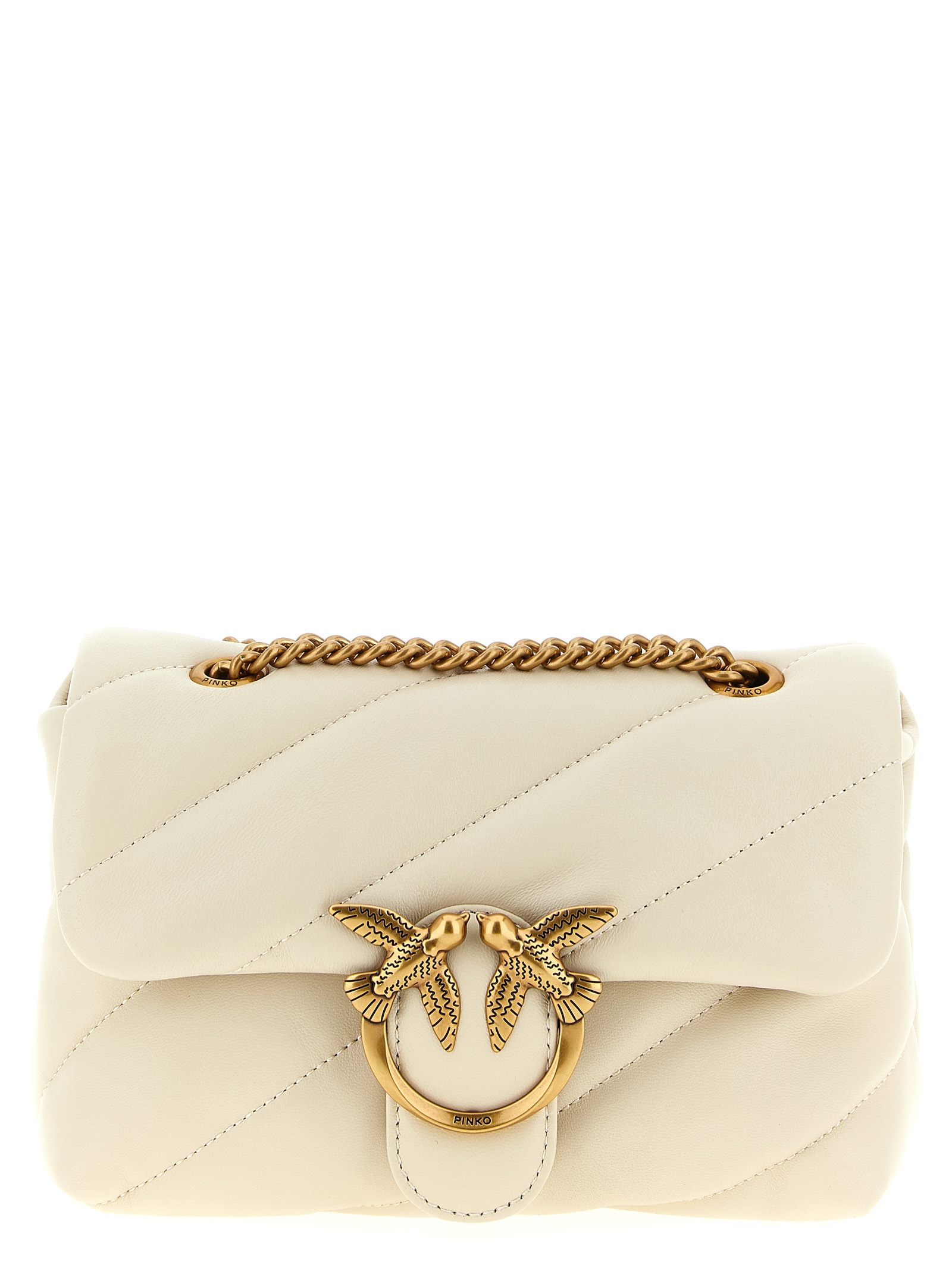 Стьобана шкіряна сумка через плече Love Mini Puff з клапаном, металевою аплікацією з логотипом спереду, ланцюжком і шкіряним плечовим ременем. PINKO