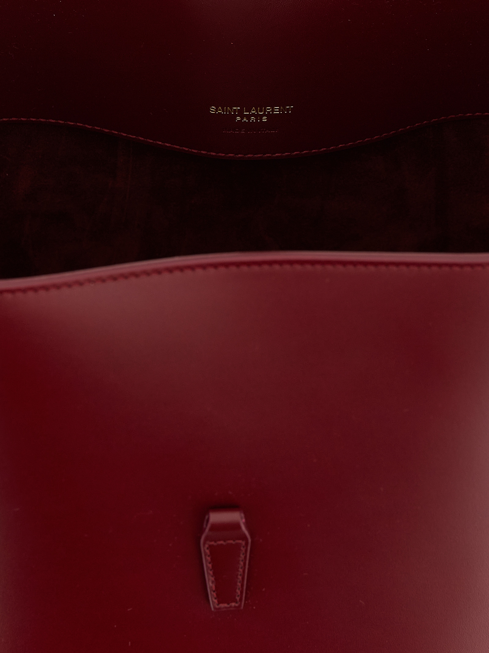 Сумка-відро «Le 37» з блискучої шкіри, застібка з логотипом Cassandra з металевим гачком і петлею з ефектом старовини, фіксована ручка, жорстке дно з металевими ніжками, підкладка із замші, регульований і знімний ремінь через плече.