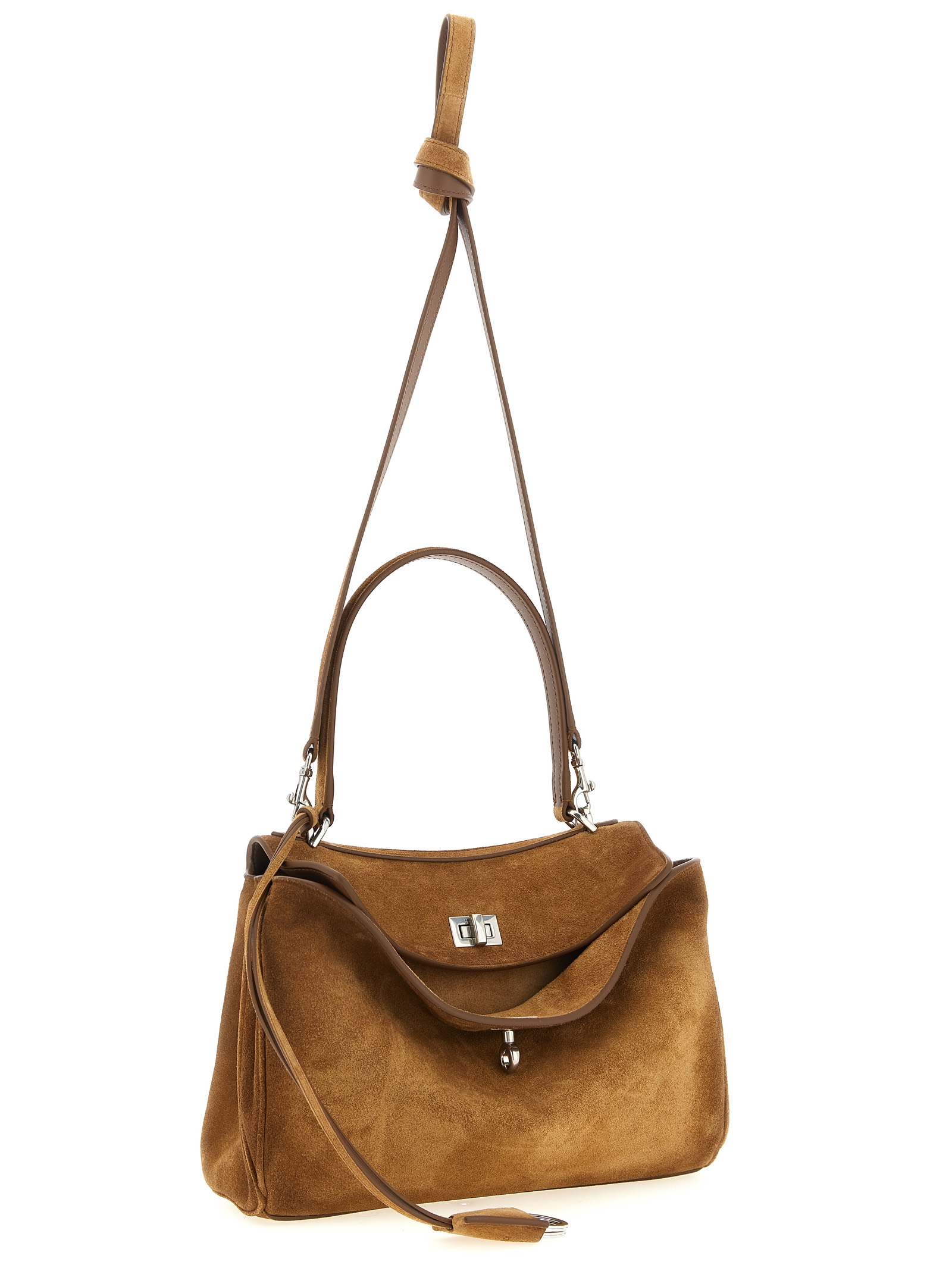 Small 'Rodeo' waxed calf leather and smooth calf leather handbag, fixed handle, swivel closure, side gussets with snap buttons, rigid base with metal feet, lamb nappa lining, adjustable and removable shoulder strap, removable keyring.