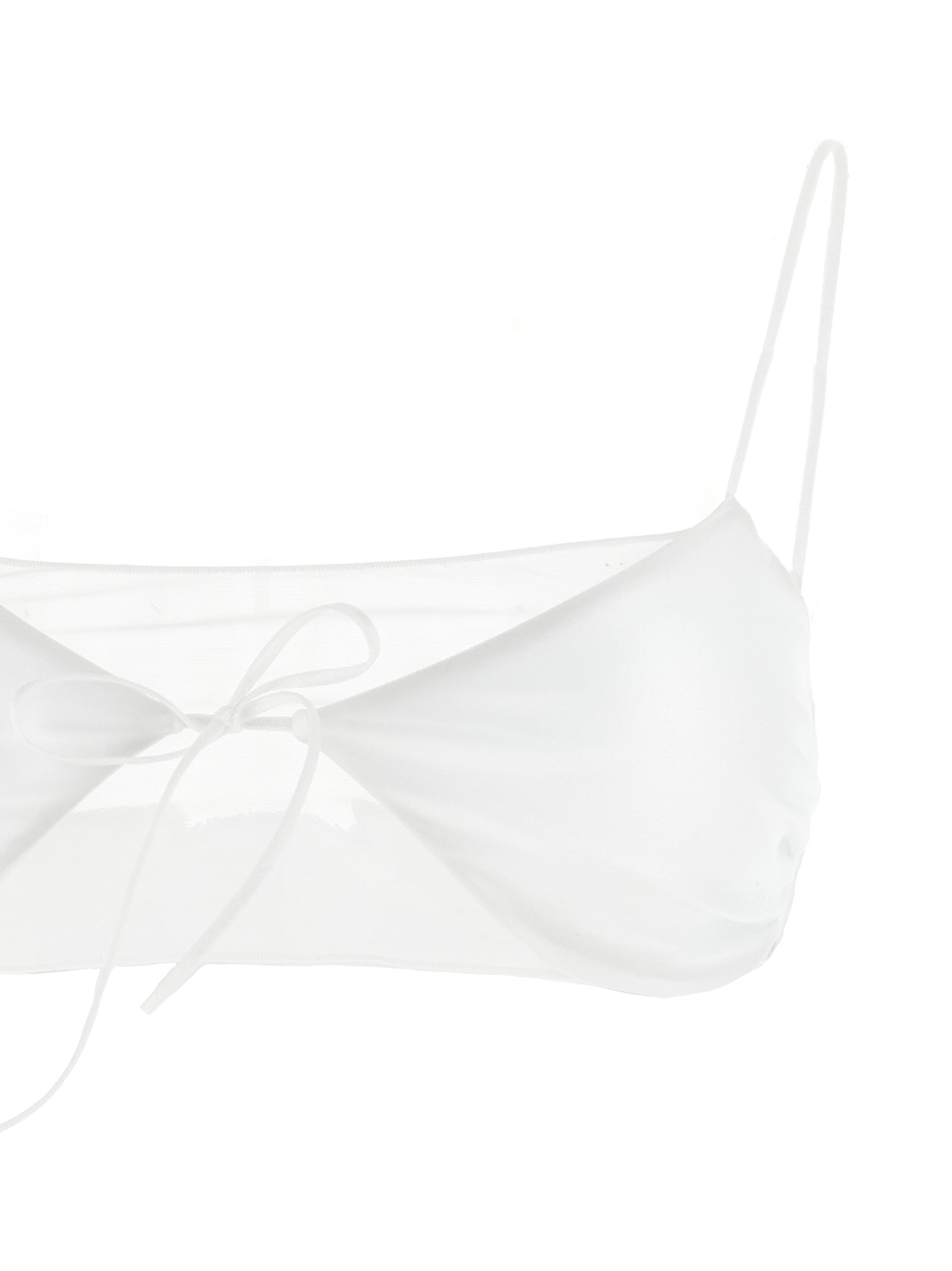 'Sporty Mesh' silk-effect lycra bikini, bralette top with semi-transparent tulle inserts and front decorative bow, side underwires, thin straps, briefs with medium cover.