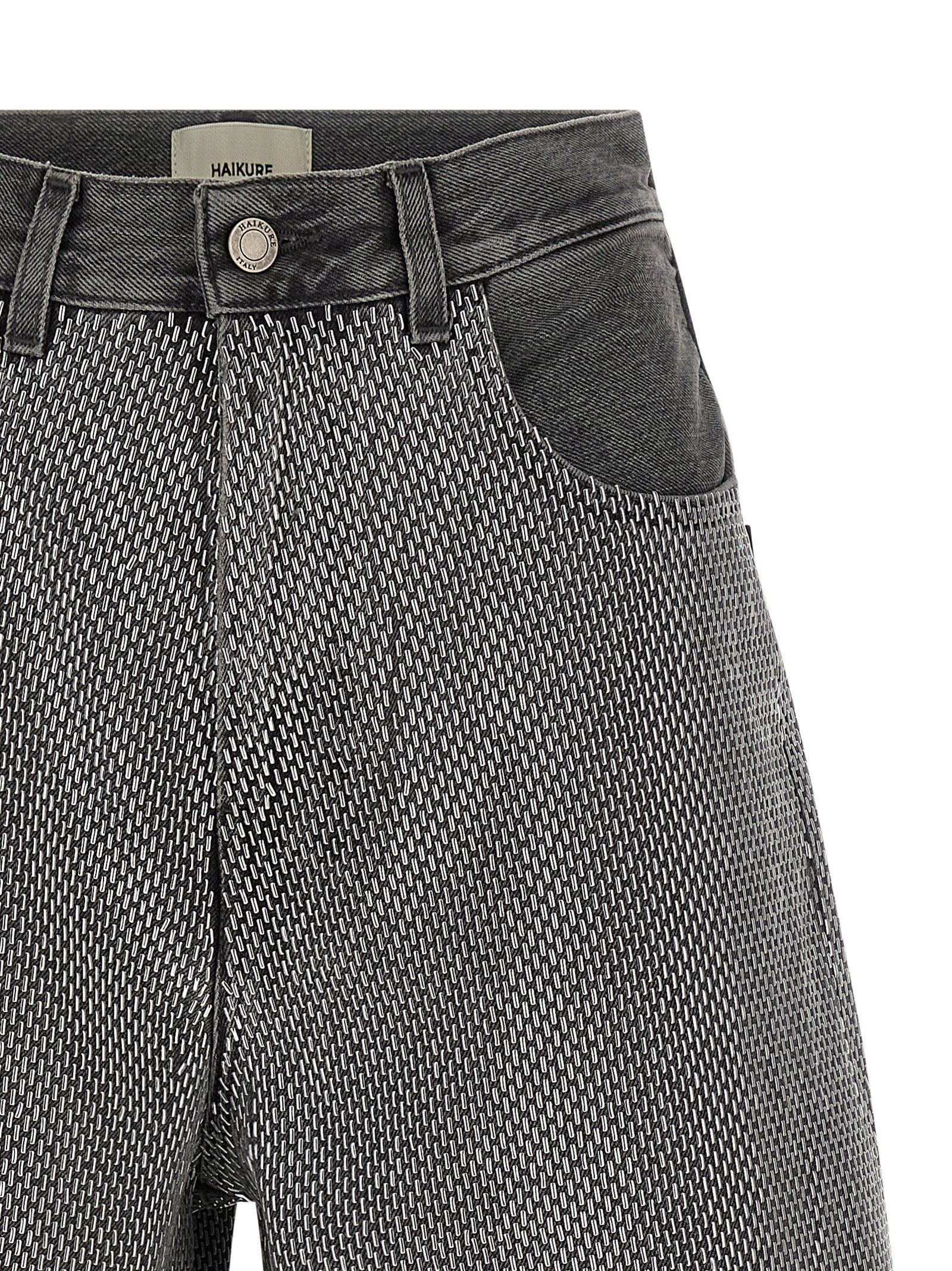 Бавовняні джинсові шорти-бермуди «Belle» з багетними заклепками по всій поверхні, широкими штанинами, застібкою на блискавці та ґудзиком спереду, п'ятьма кишенями та замшевою етикеткою з логотипом ззаду.