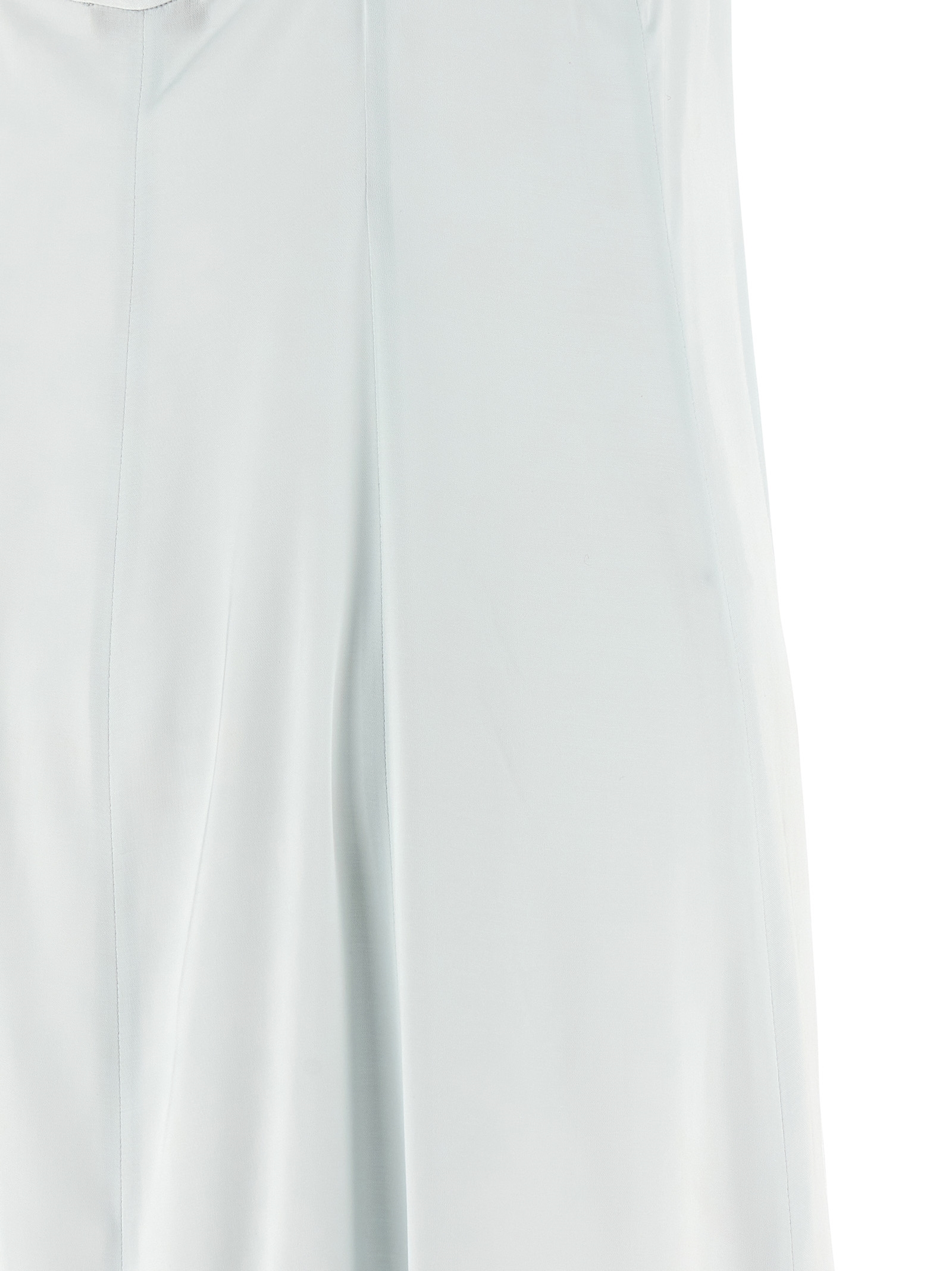 Long dress in fluid viscose satin, flared silhouette, wide round neckline at the front, thin straps and back detail with metal 'Punto Luce', wide back square neckline with cut-out, side zip closure, lining.