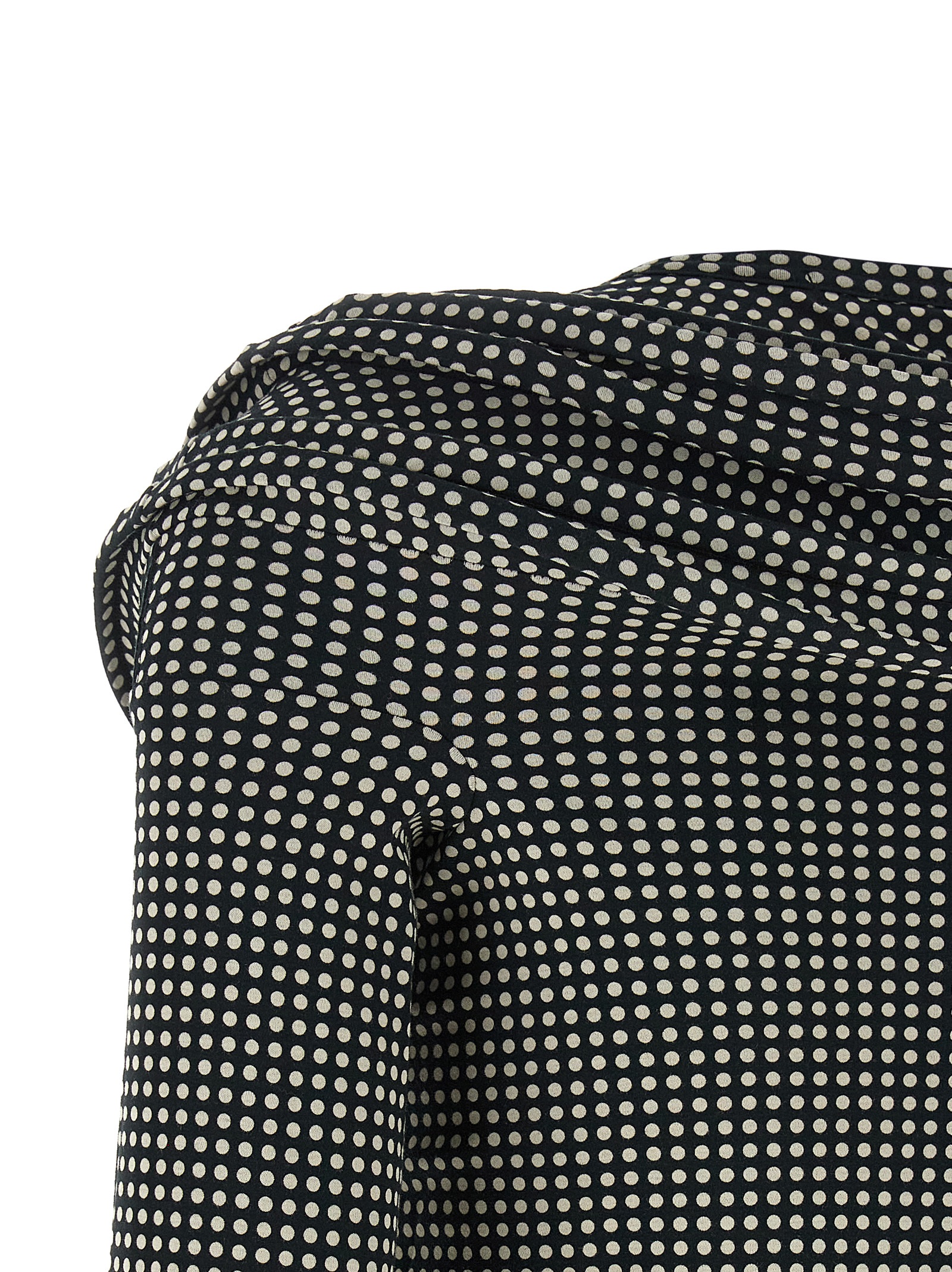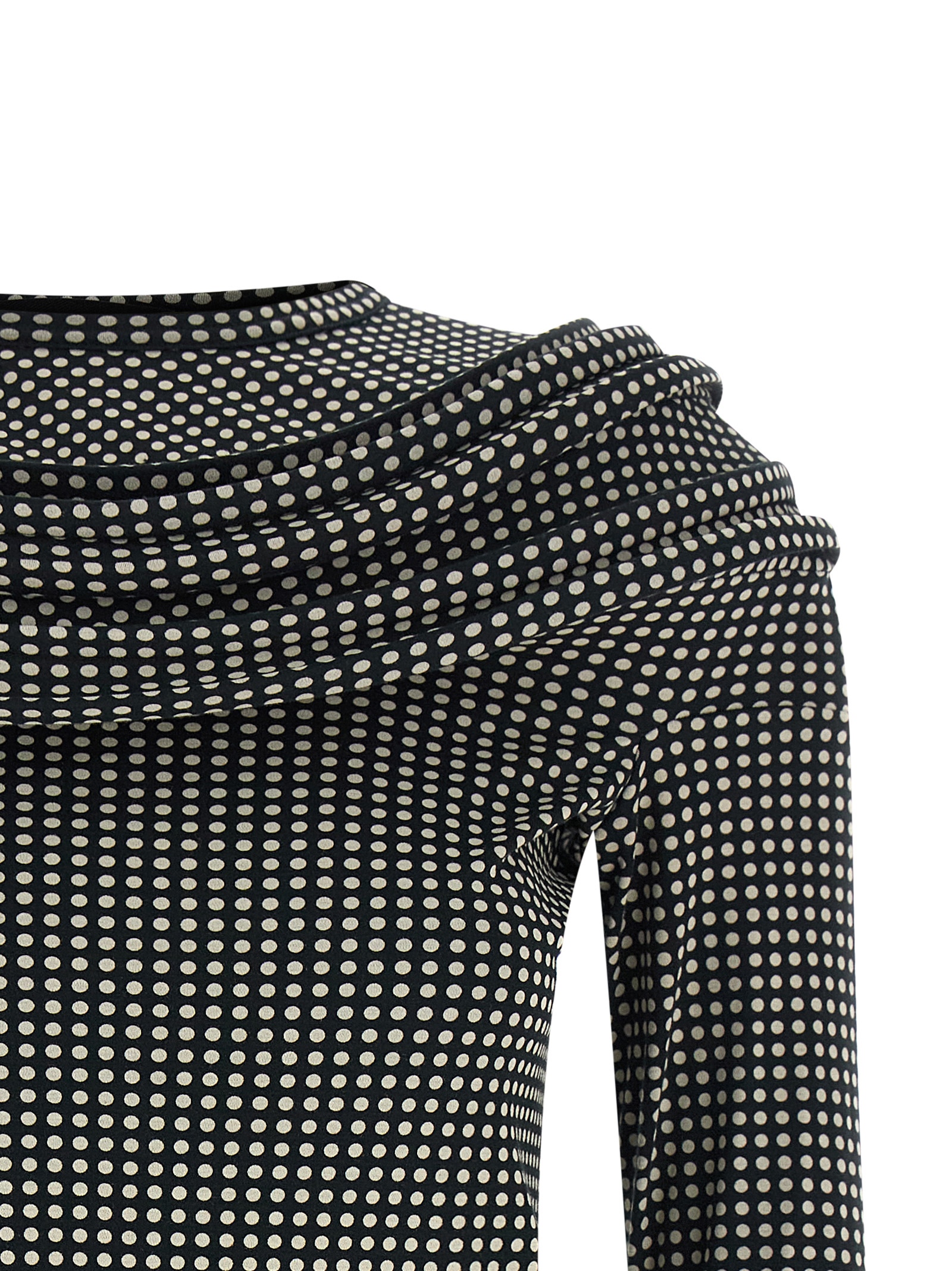 Mini dress in light cotton jersey super stretch polka dot pattern, sculptural top designed with inner wire, crew neck, long sleeves.