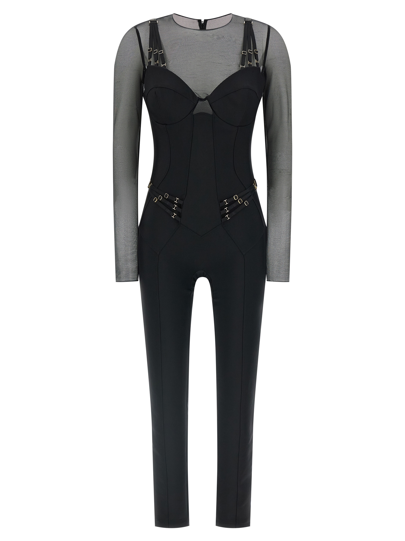 Комбінезон з джерсі та тюлю Чорний ELISABETTA FRANCHI TU05661E2110