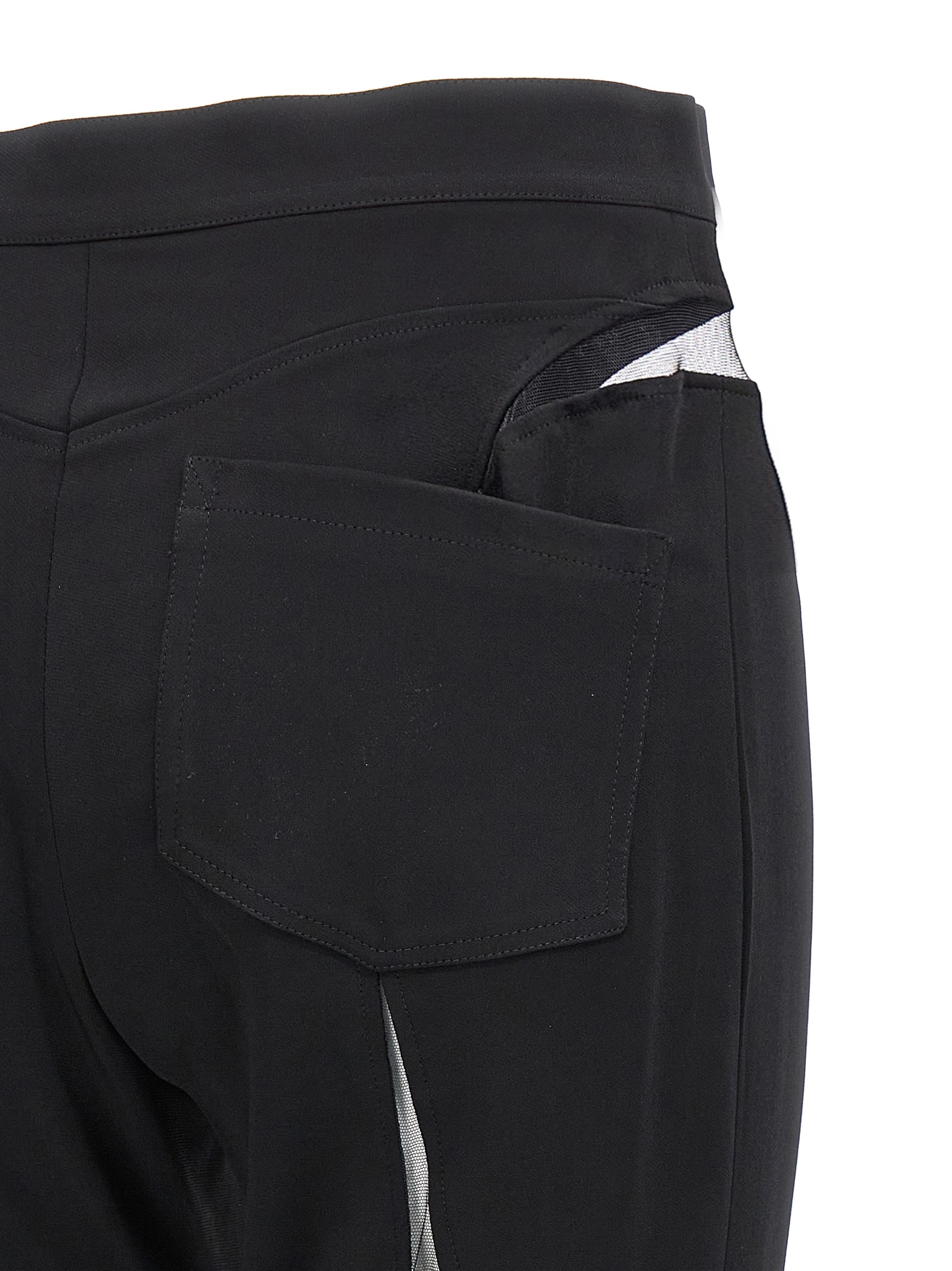 'Illusion' pants in stretch viscose blend with transparent tulle inserts, zip and button closure.