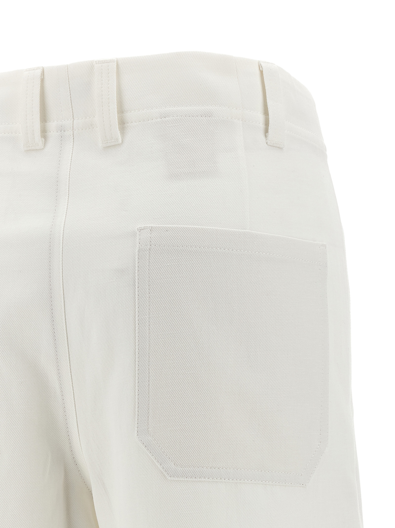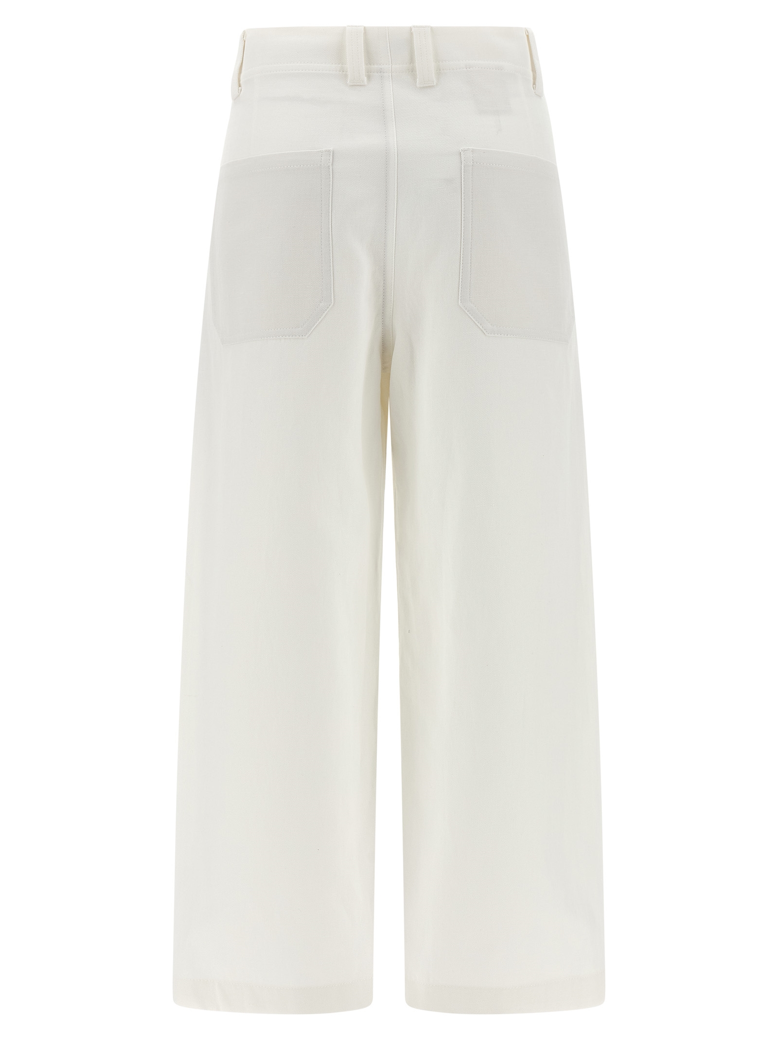 'Chino Crop' cotton and linen gabardine trousers, wide and straight leg, zip closure with button and front counterbutton, front slanted pockets, back patch pockets, simple hem.