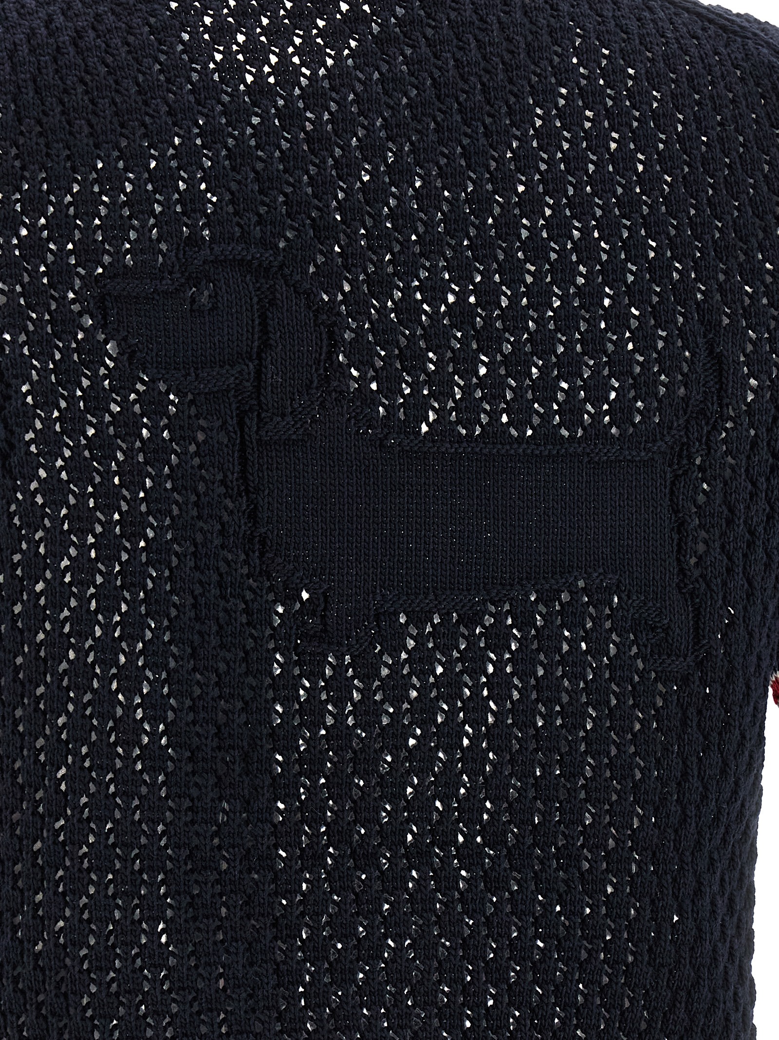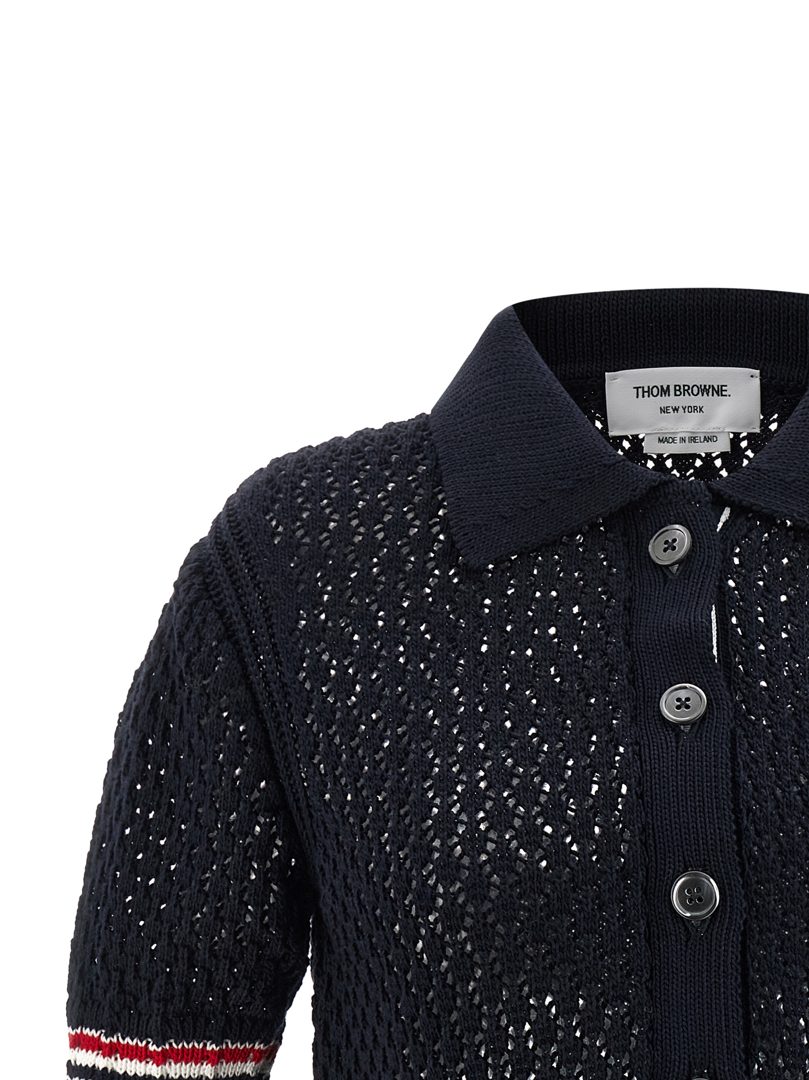 Polo shirt in openwork 'Hector pointelle' cotton knit with shirt collar, front button closure and 'RWB' grosgrain, short sleeves with 'RWB' intarsia on the edges.