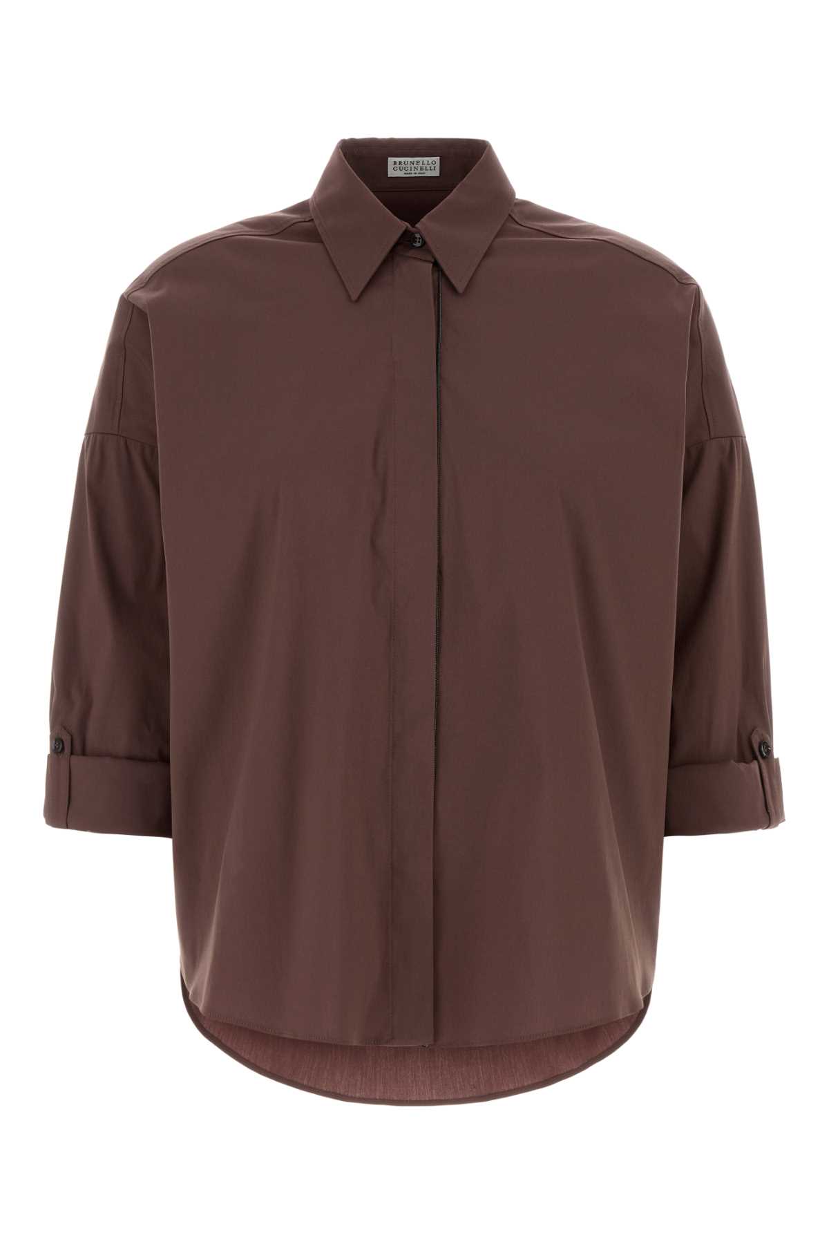 Chocolate stretch poplin shirt BRUNELLO CUCINELLI (M0091MA636)
