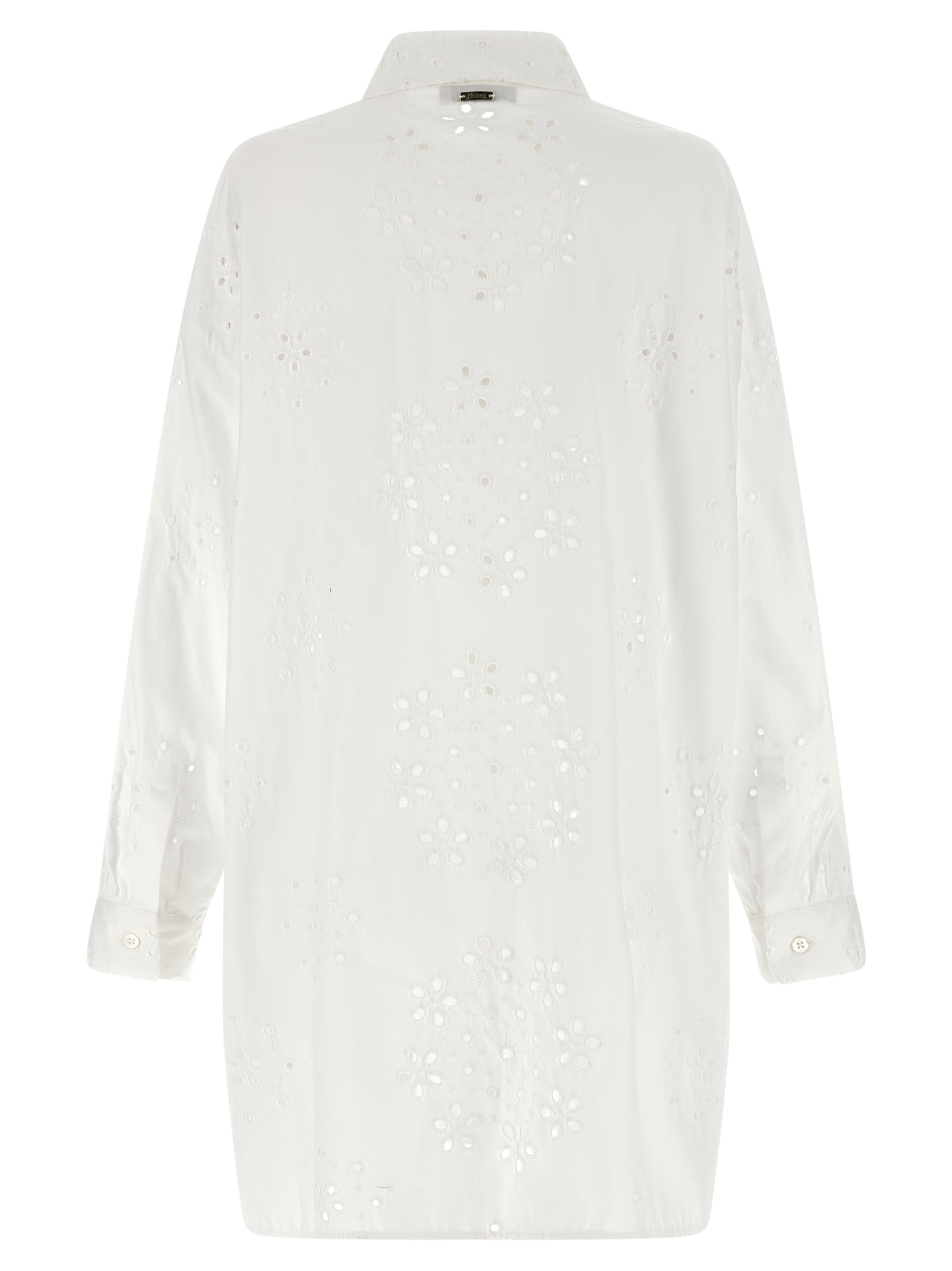 'Broderie Anglaise' sangallo cotton shirt with embossed embroidery and perforated patterns, French collar, front mother-of-pearl button closure, long cuffed sleeves.