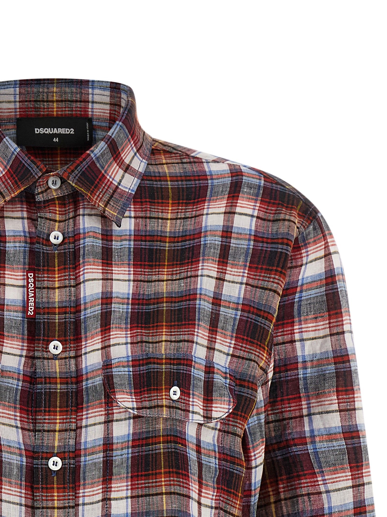 'Check Baby' breathable linen shirt with check print inspired by the college and Ivy League world, slightly cropped model, pockets, front button closure, long sleeves with cuffs and dropped shoulder, rounded hem.