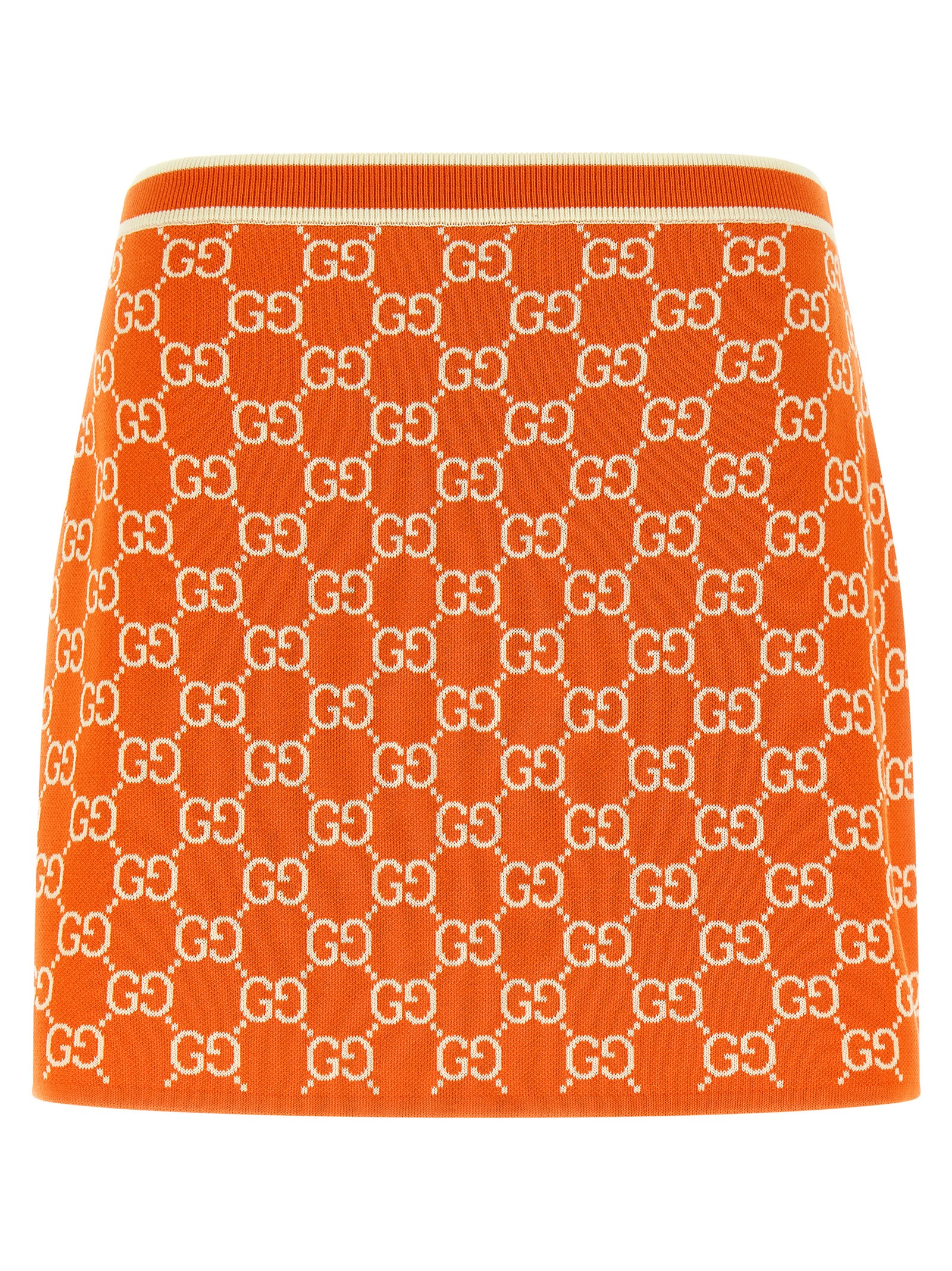 All-over GG jacquard cotton knit cotton mini skirt, elastic waistband, flared silhouette.