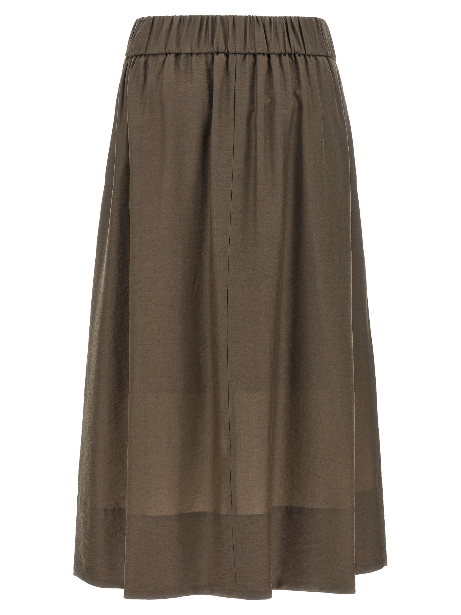 Midi skirt in fluid fabric, A-line silhouette, pince, back elastic waistband, pockets with metal 'Punto Luce' detail, cupro lining.