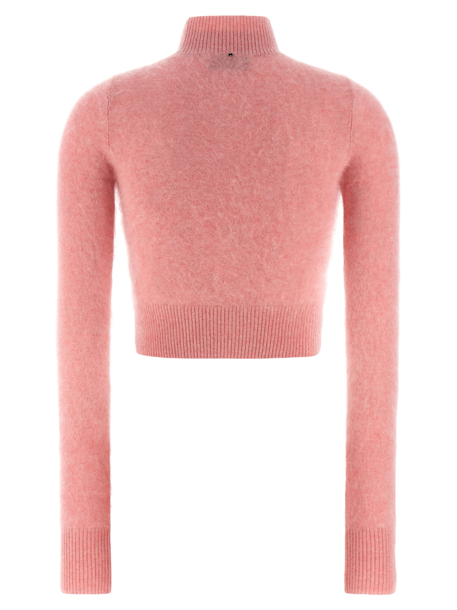 'Gubbio' cashmere sweater, crop model, high neck, long cuffed sleeves.