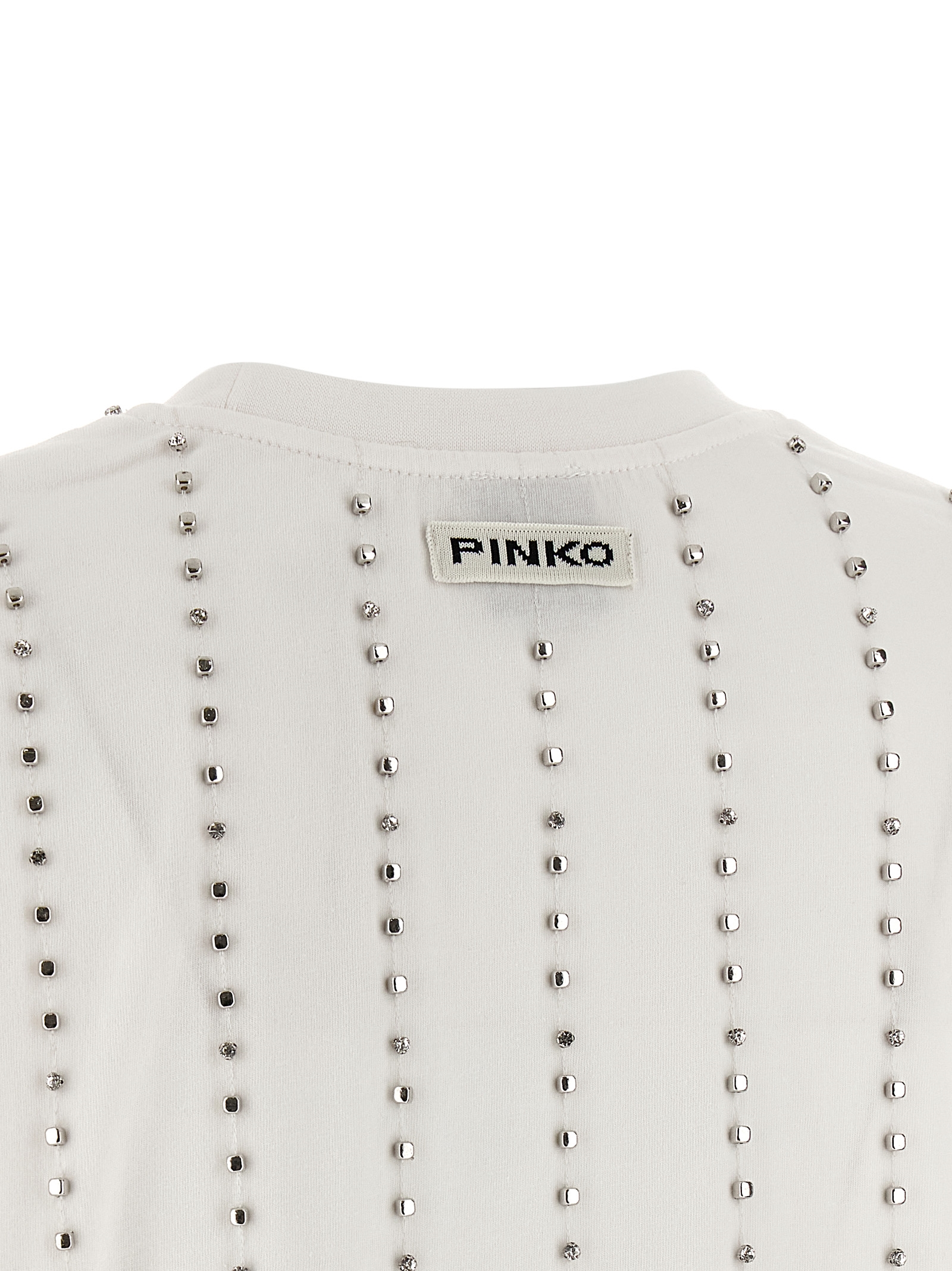 Бавовняна футболка «Wilma» з смужками з кришталевих аплікацій, круглим вирізом, короткими рукавами та опущеними плечима.