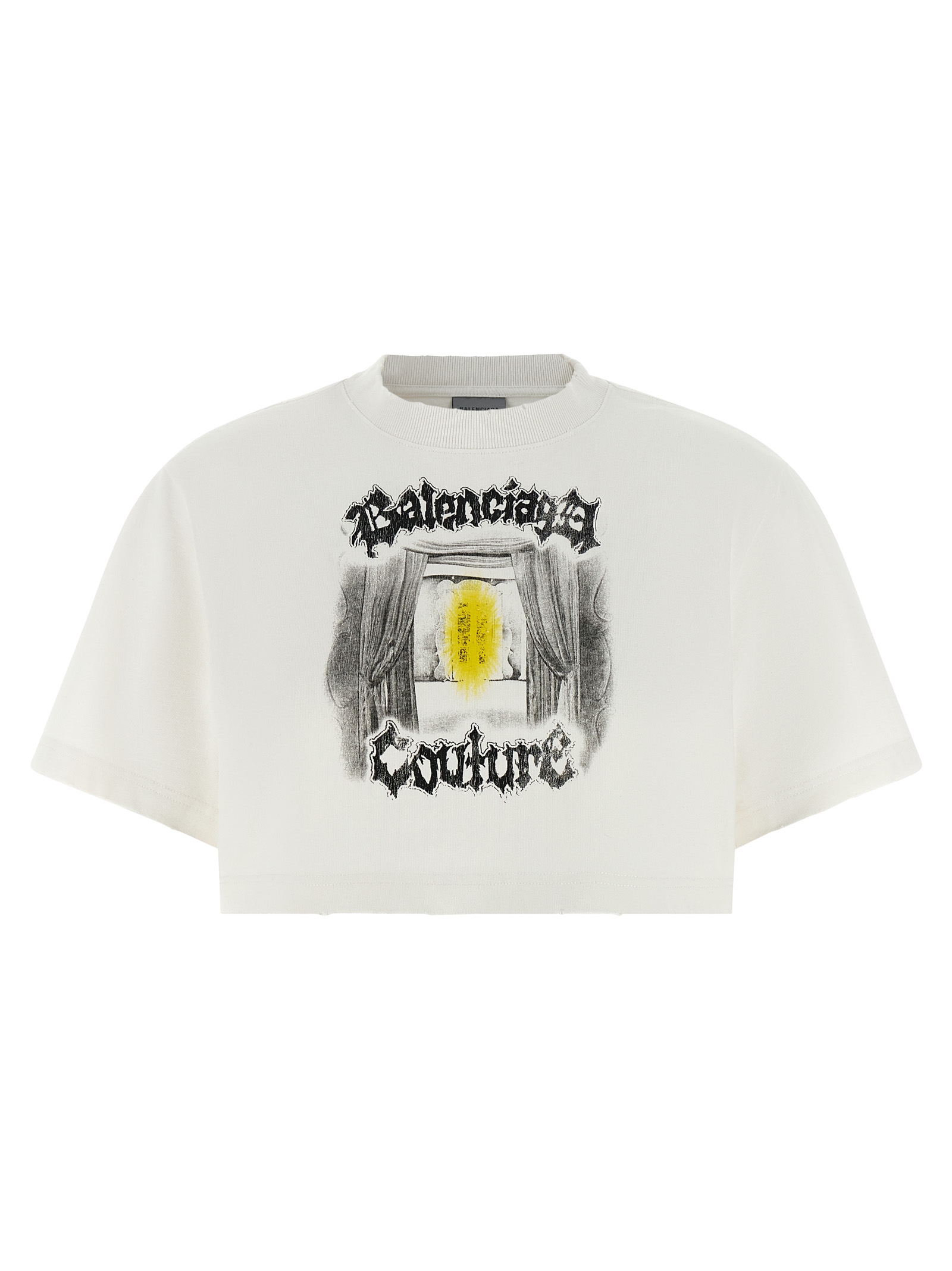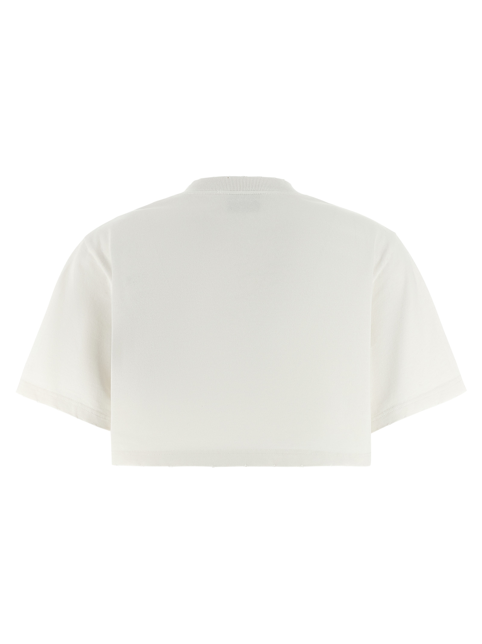 Cropped cotton T-shirt with crewneck with used-effect details, front print, and short sleeves.