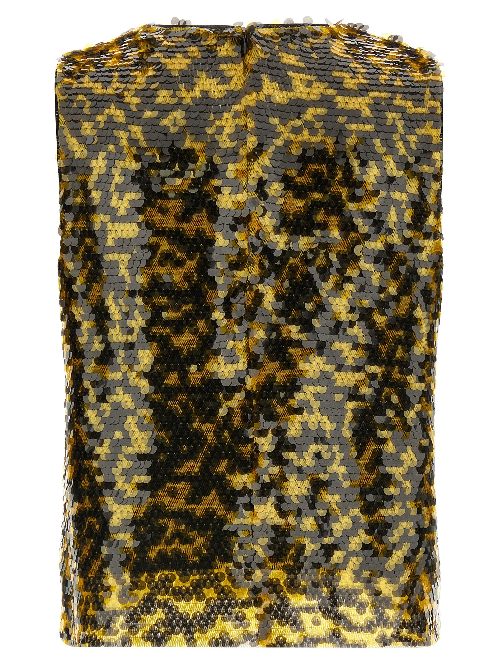 Тканинний топ «Seraphina» покритий двоколірними паєтками, злегка укорочений фасон, квадратний силует, кругла горловина, застібка-блискавка ззаду.