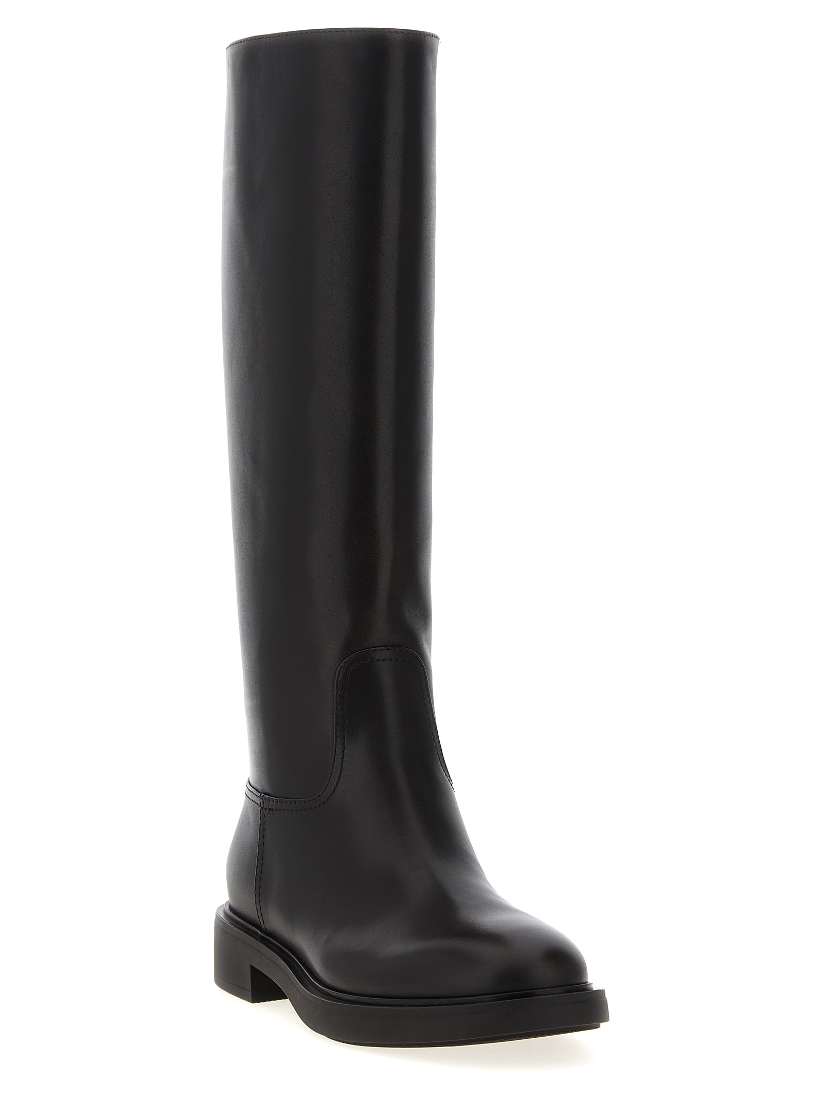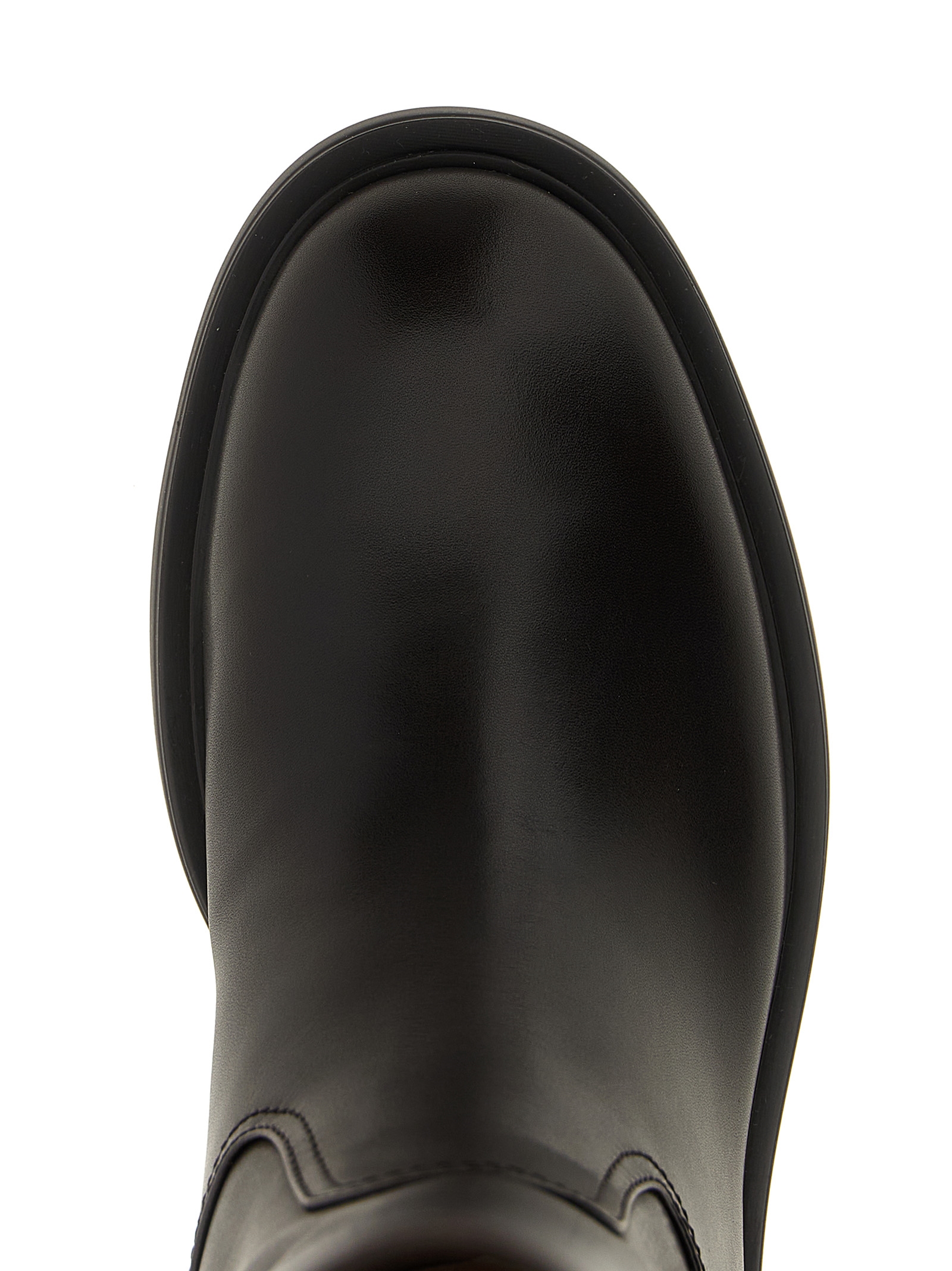 Шкіряні чоботи «Ascott», модель без шнурівки, з заокругленим носком, металевим логотипом «Ribbon» ззаду, гумовою підошвою.
