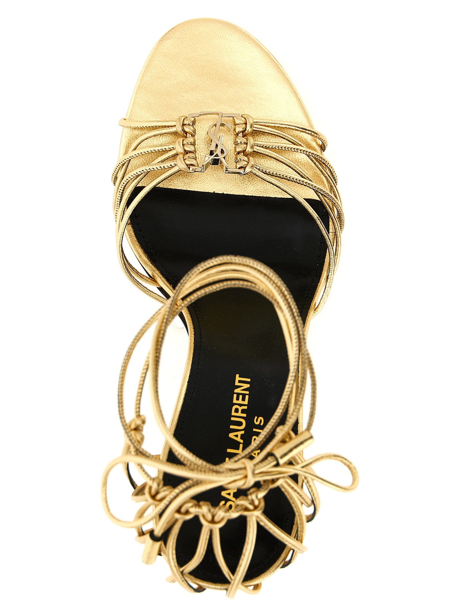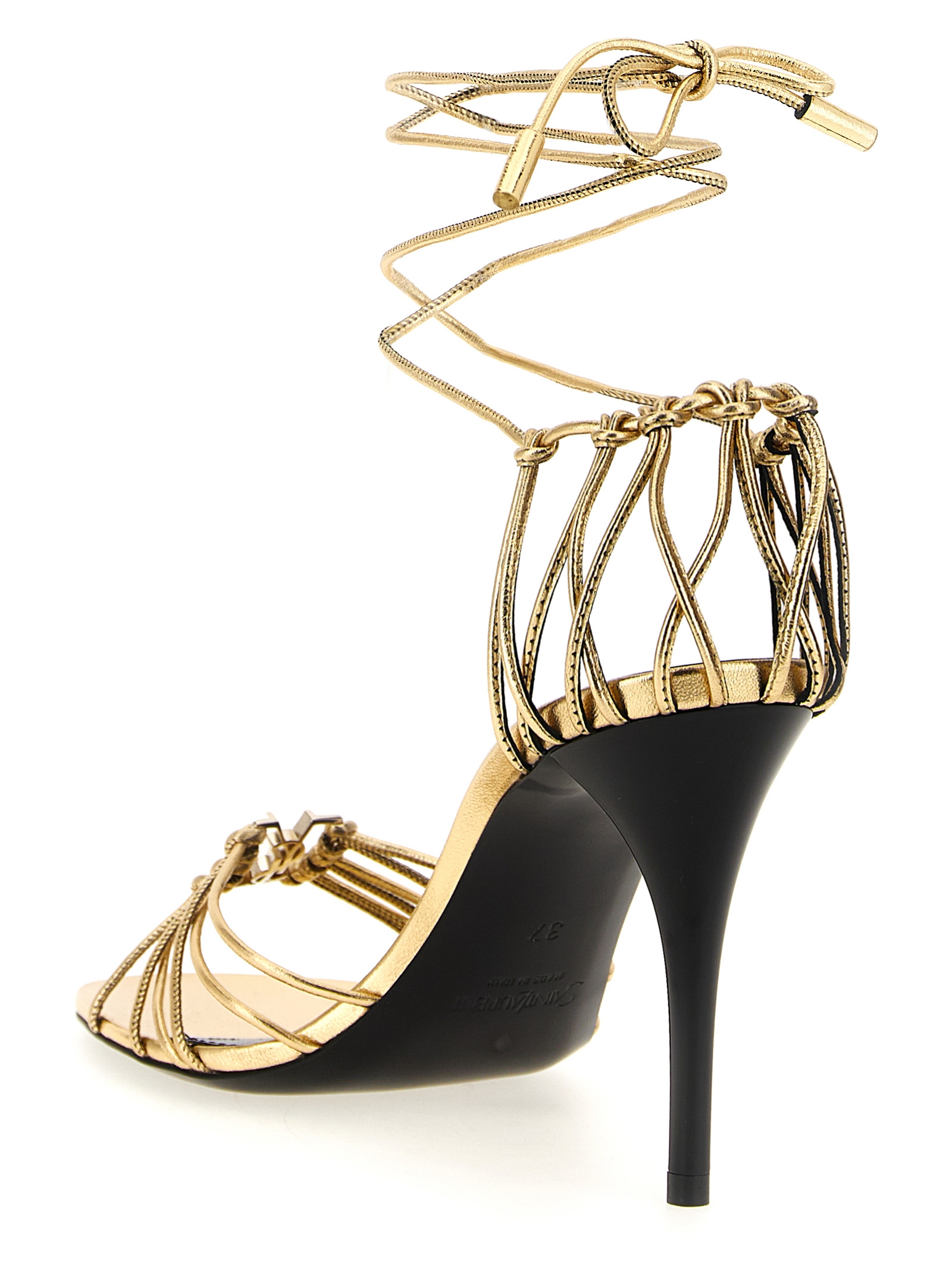 Металізовані шкіряні сандалі «Babylone» з металевим логотипом Cassandre з ефектом старовини на передній частині, мигдалеподібним носком, ремінцем на щиколотці, шпилькою, шкіряною підошвою.
