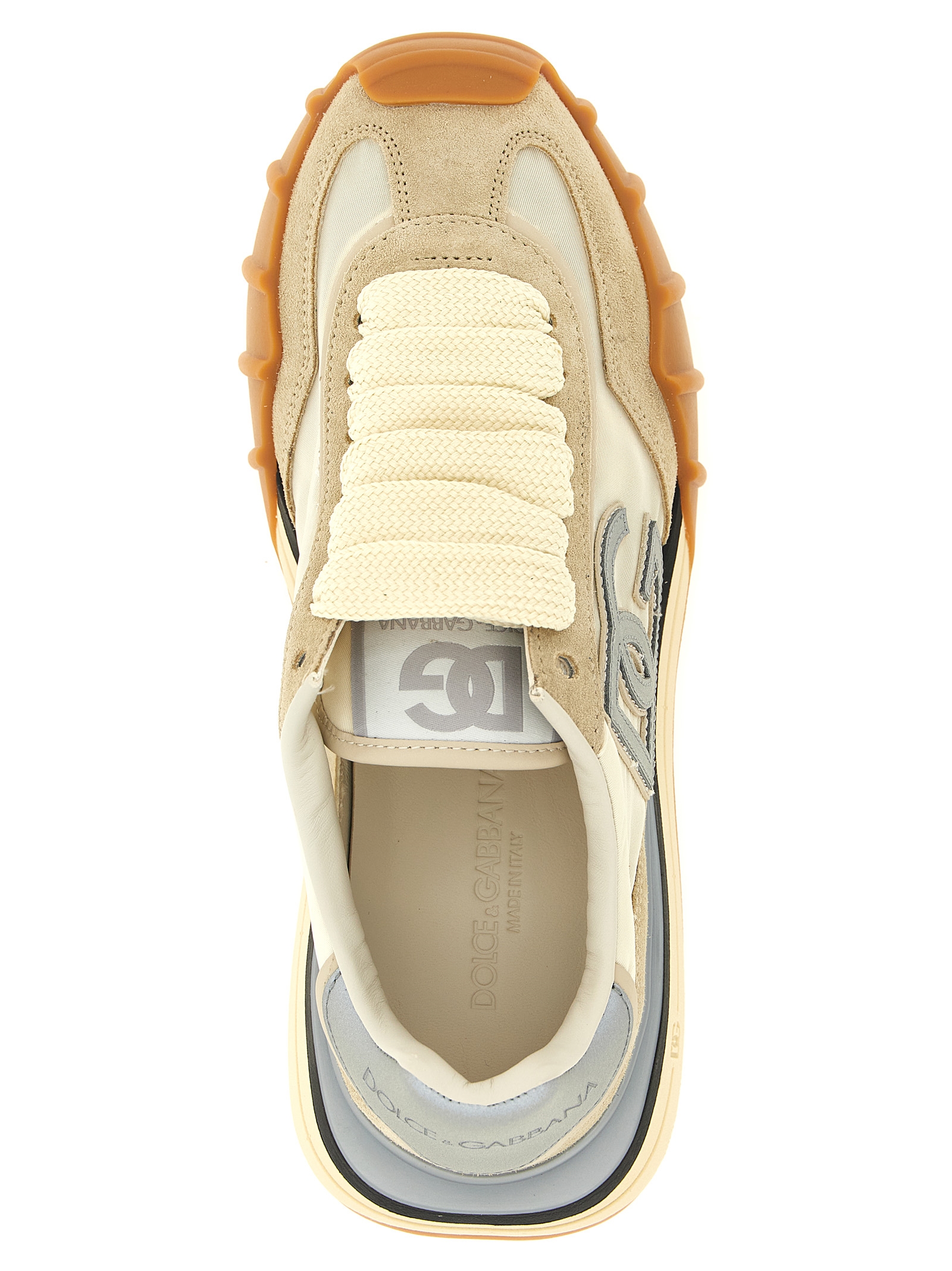 'DG Athletic' suede and canvas sneakers, side logo, contrasting smooth leather heel with embossed logo, lace-up closure, felt insole, thermoformed foam fussbett insole wrapped in leather, rubber, Phylon and TPU sole.